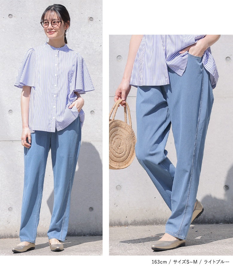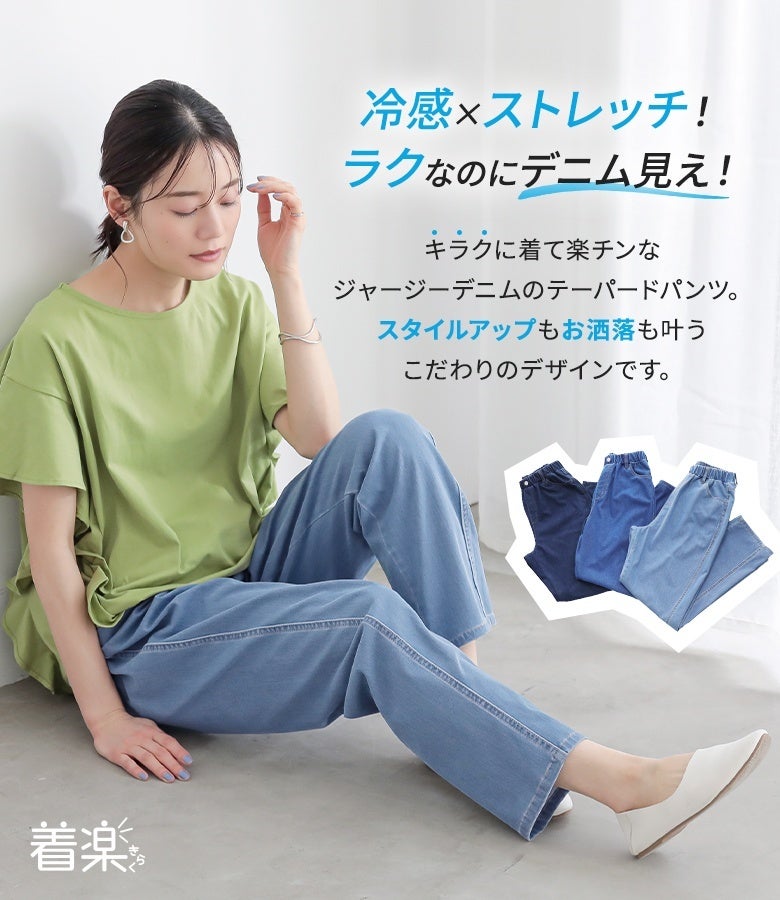 【新色登場】『n'OrLABEL接触冷感ジャージ―デニムテーパードパンツ』