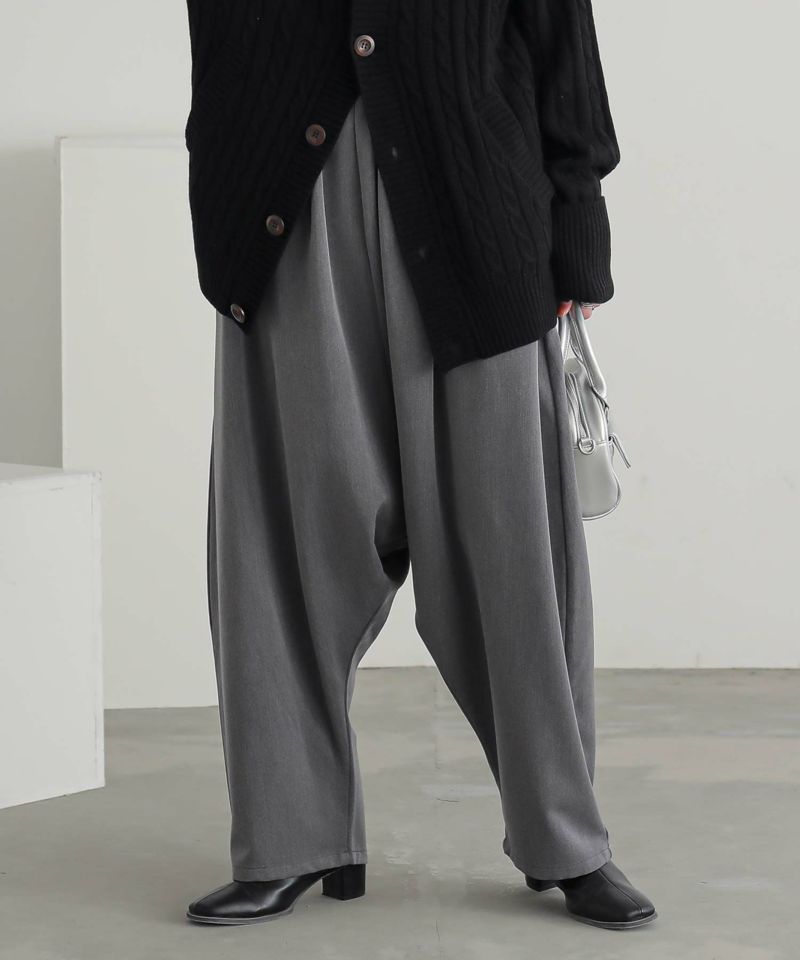 【普段着用】 Tops: S/M Bottoms: S/M | 【1】 着丈(ウエスト穿き):くるぶしが隠れる位 ウエスト:ややゆったり ヒップ:ややゆったり 太もも周り:ゆったり 全体:ややゆったり