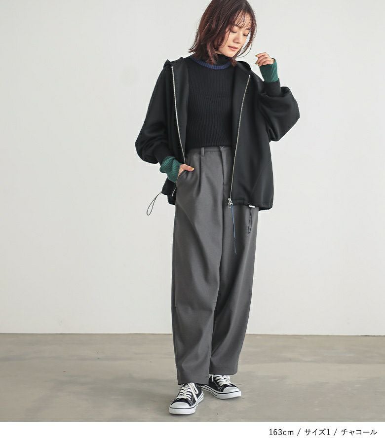 【普段着用】 Tops: S/M Bottoms: M | 【1】 着丈(ウエスト穿き):くるぶしが隠れる位 ウエスト:ジャスト ヒップ:ゆったり 太もも周り:ゆったり 全体:ややゆったり