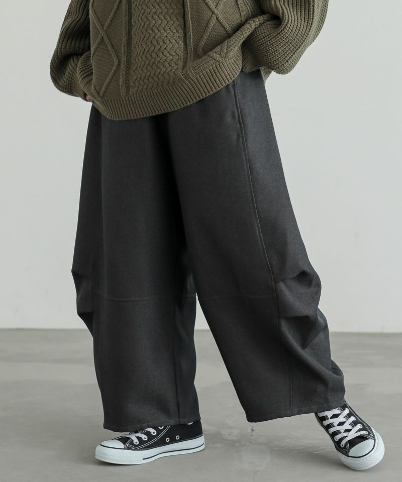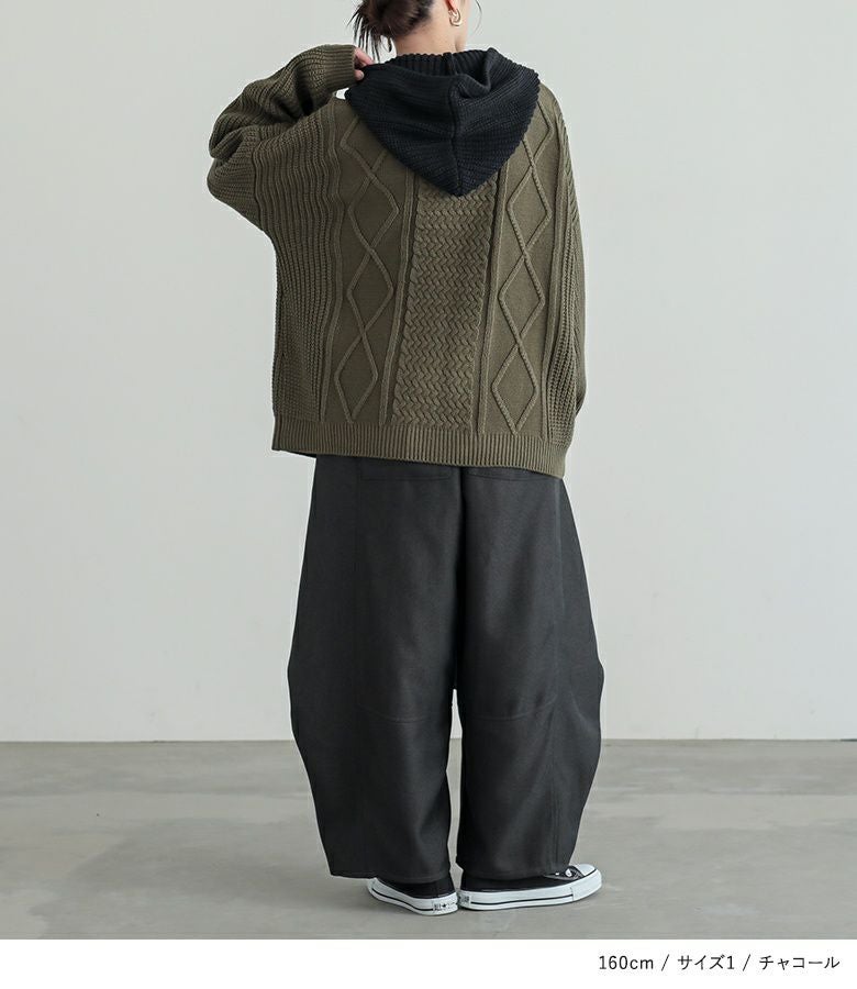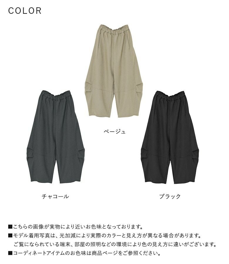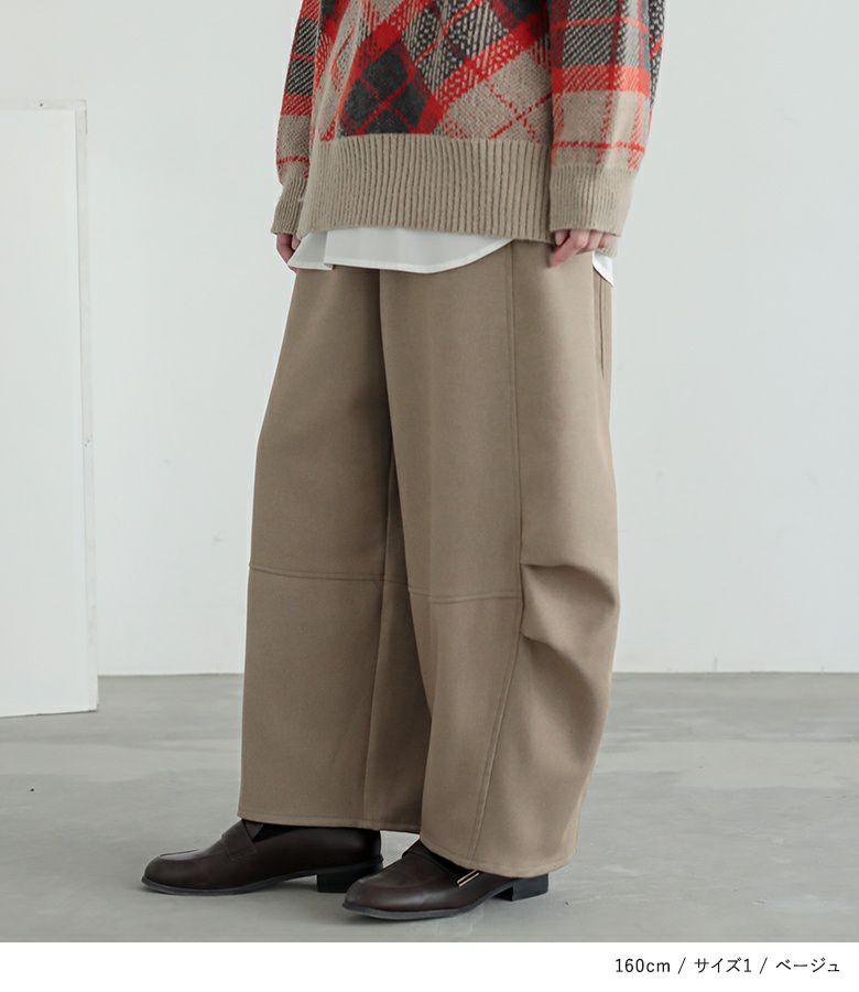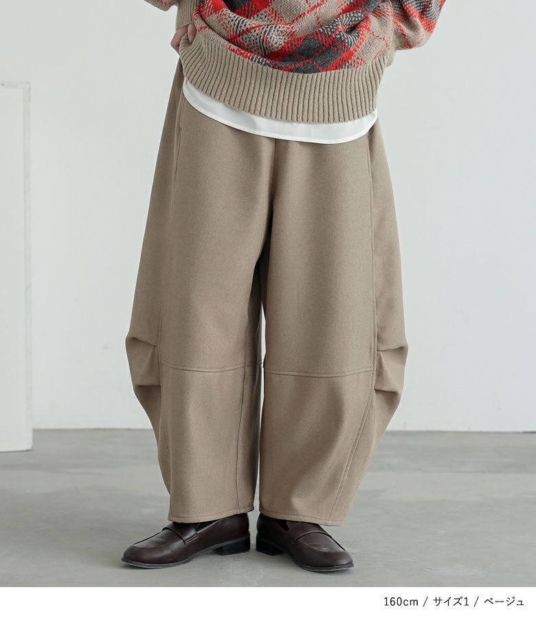 【2】 着丈(ウエスト穿き):かかと位 ウエスト:ゆったり ヒップ:ゆったり 太もも周り:ゆったり 全体:ゆったり