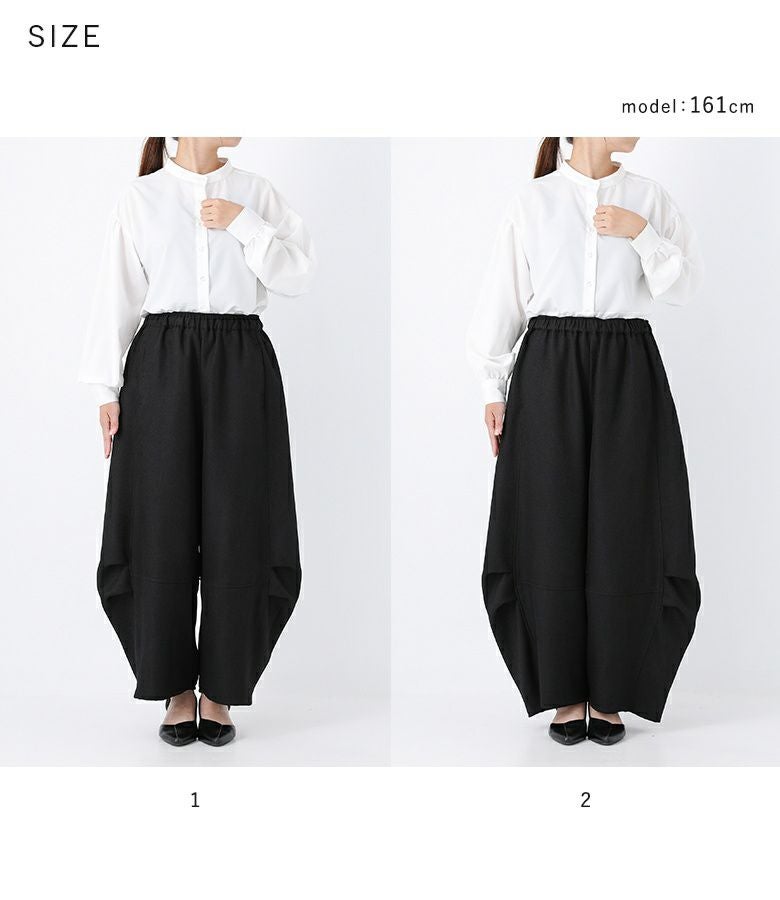 【2】 着丈(ウエスト穿き):くるぶしが隠れる位 ウエスト:ゆったり ヒップ:ゆったり 太もも周り:ゆったり 全体:ゆったり