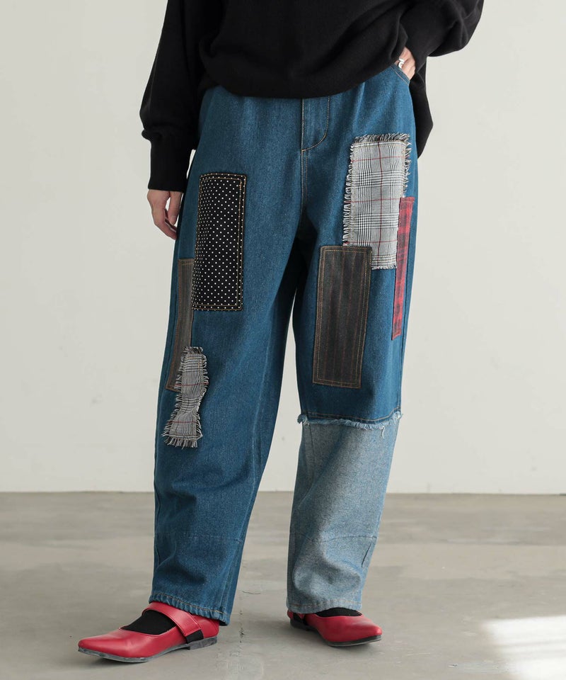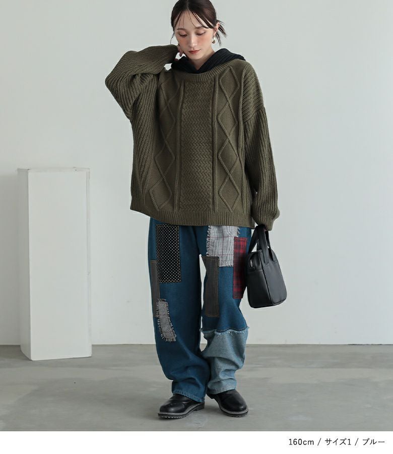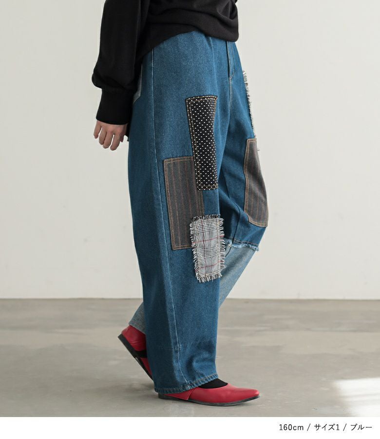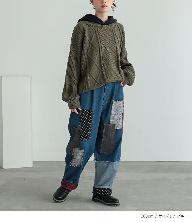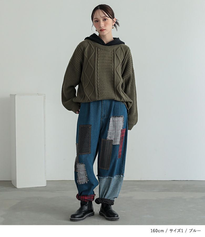 【2】 着丈(ウエスト穿き):かかとから3cm余る位 ウエスト:ややゆったり ヒップ:ゆったり 太もも周り:ゆったり 全体:ゆったり