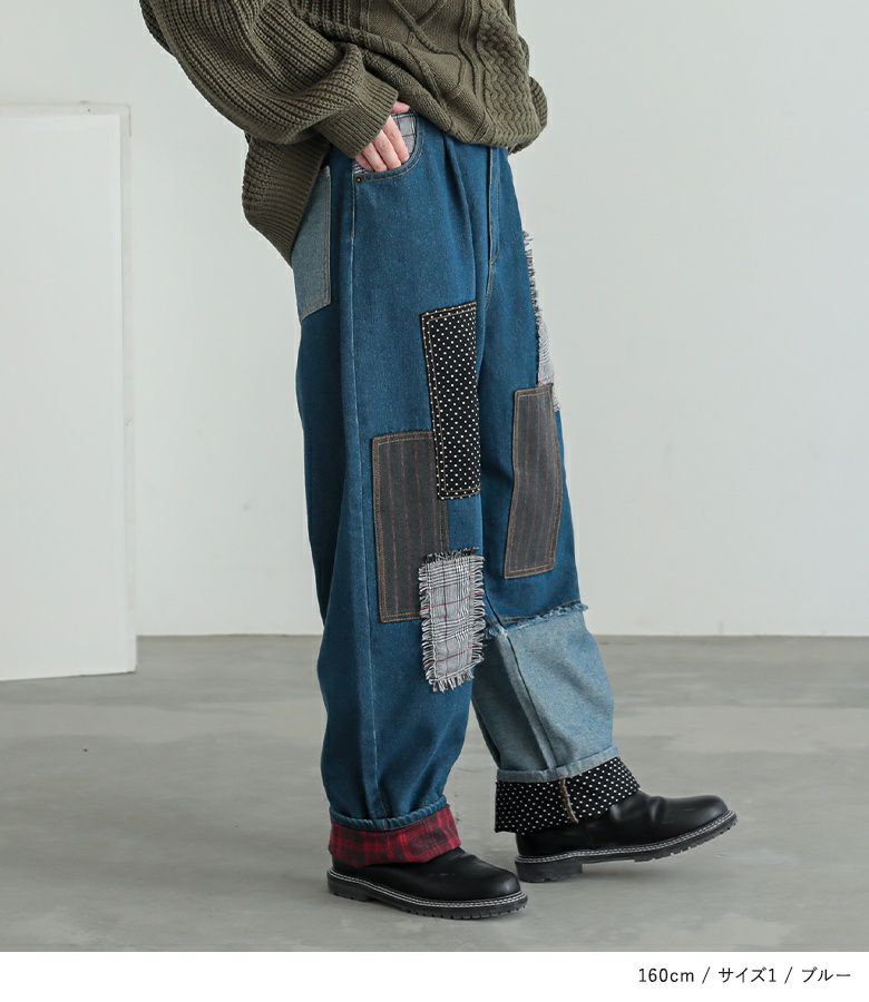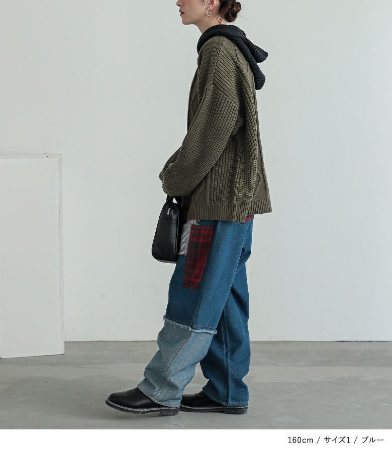 【普段着用】 Tops: M Bottoms:M | 【1】 着丈(ウエスト穿き):かかとから5cm余る位 ウエスト:ややゆったり ヒップ:ゆったり 太もも周り:ゆったり 全体:ゆったり