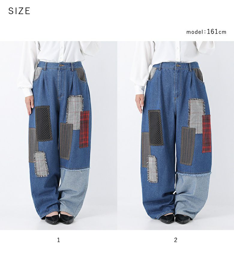 【普段着用】 Tops: M Bottoms: M/L | 【1】 着丈(ウエスト穿き):かかとから3cm余る位 ウエスト:ジャスト ヒップ:ゆったり 太もも周り:ゆったり 全体:ややゆったり
