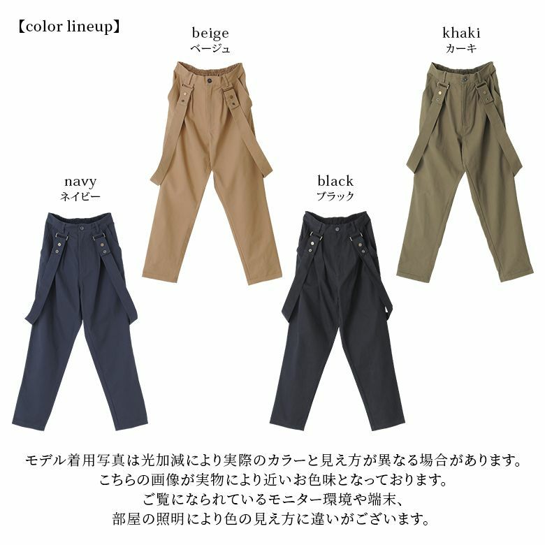 M・Lの2サイズ展開に加えて、サスペンダーはスナップボタンで長さ調整や取り外しが簡単にできるのも嬉しいポイント♪