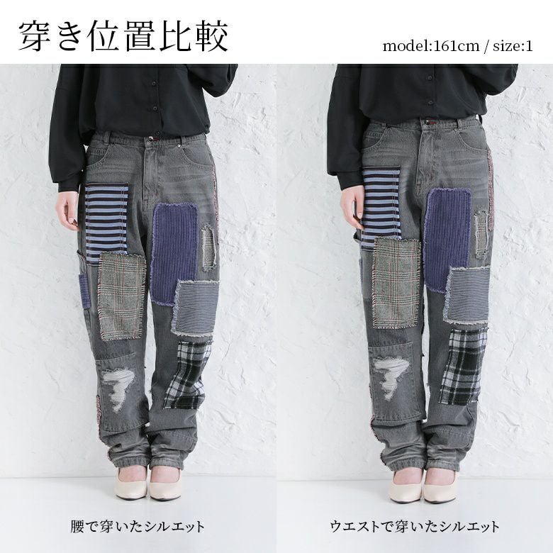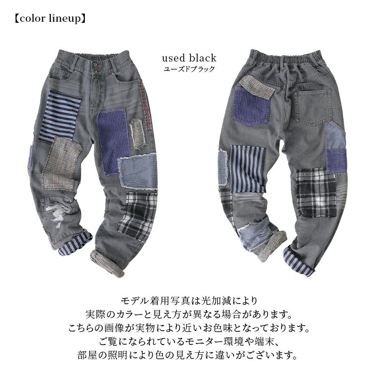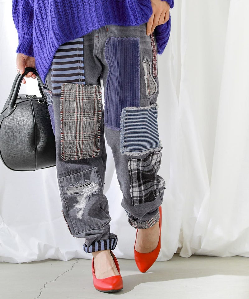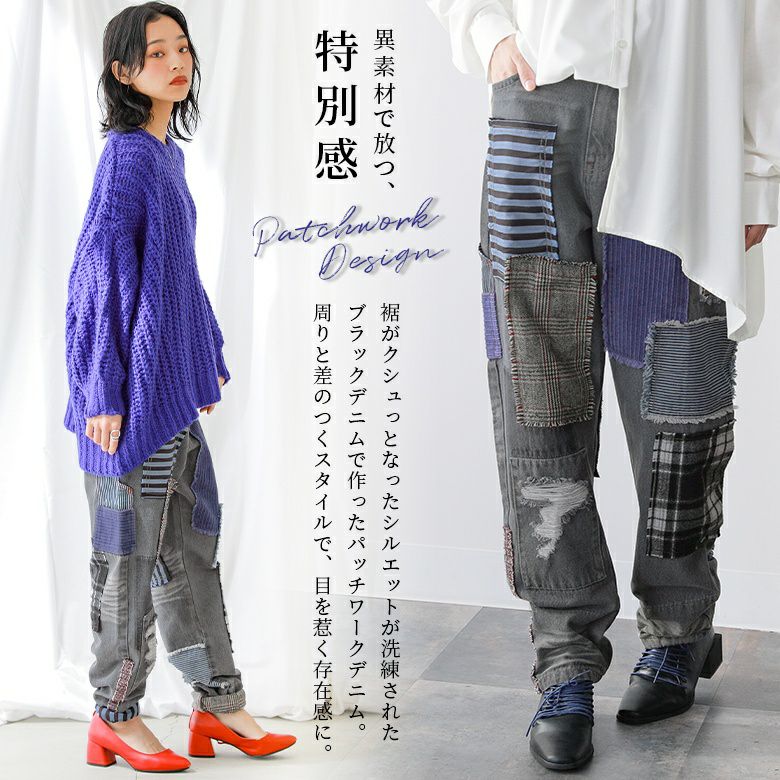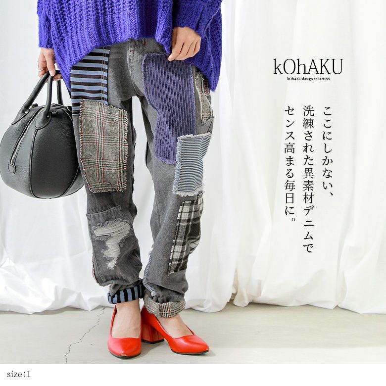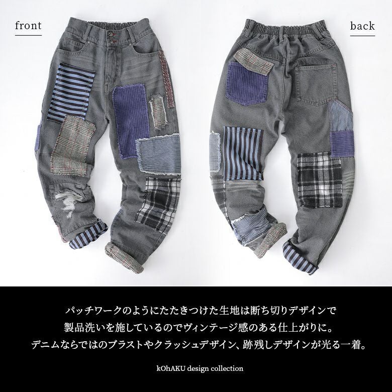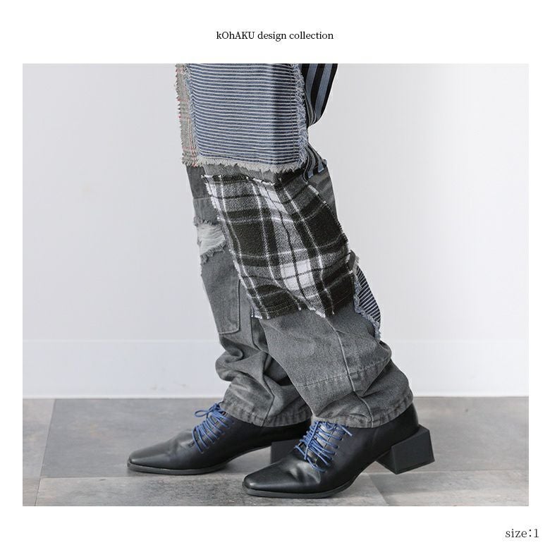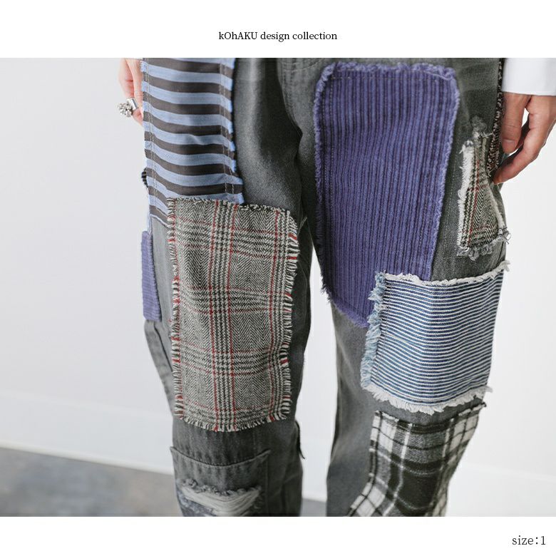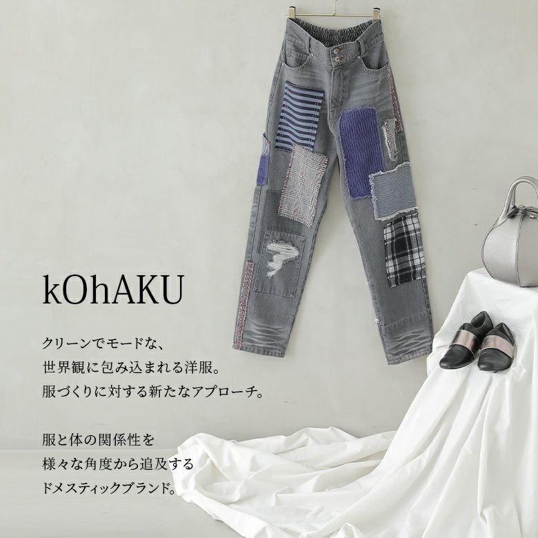 デニムならではのデザイン性が光る≪kOhAKU≫パッチワークデザインブラックデニムパンツです。