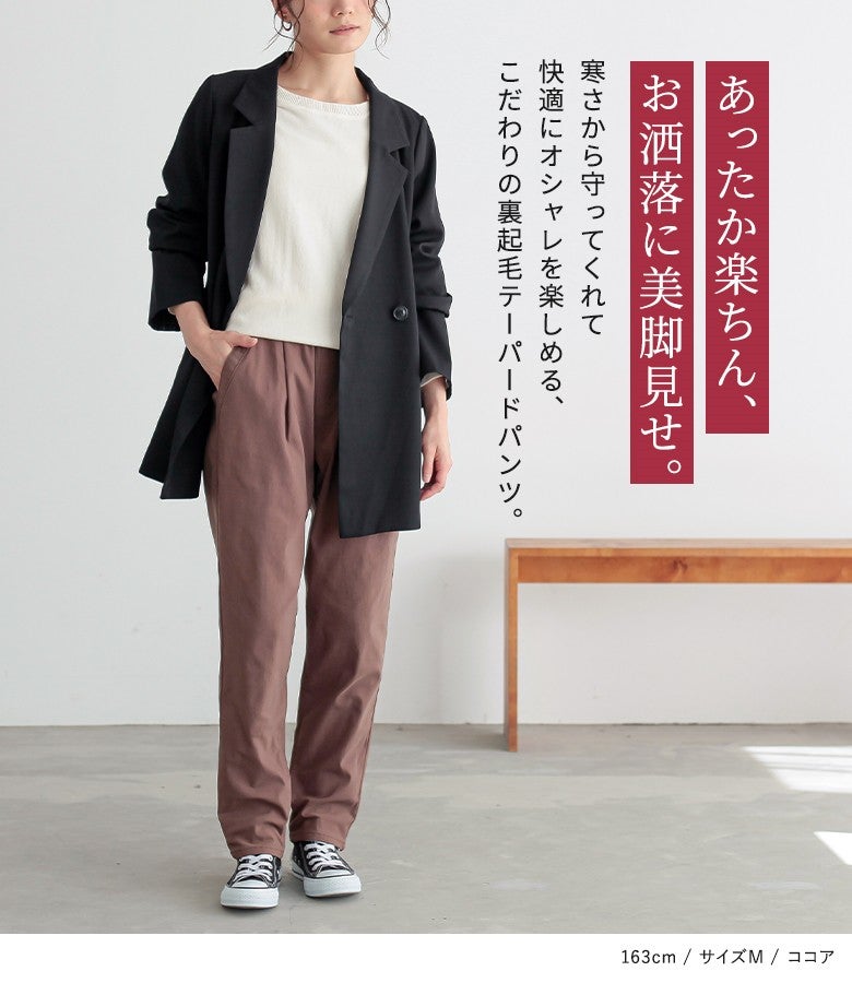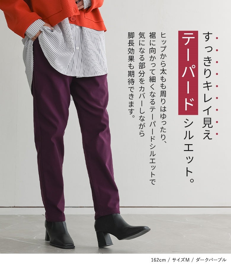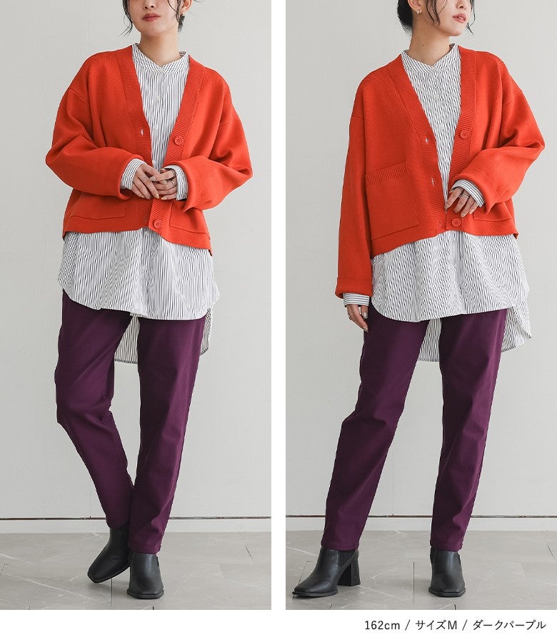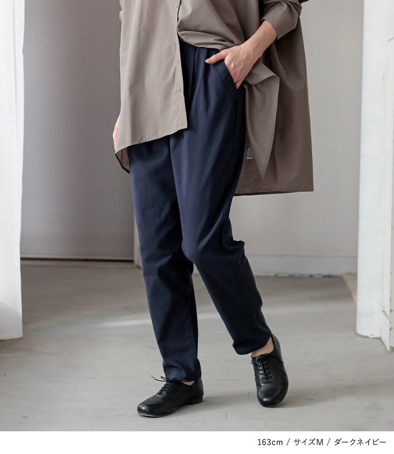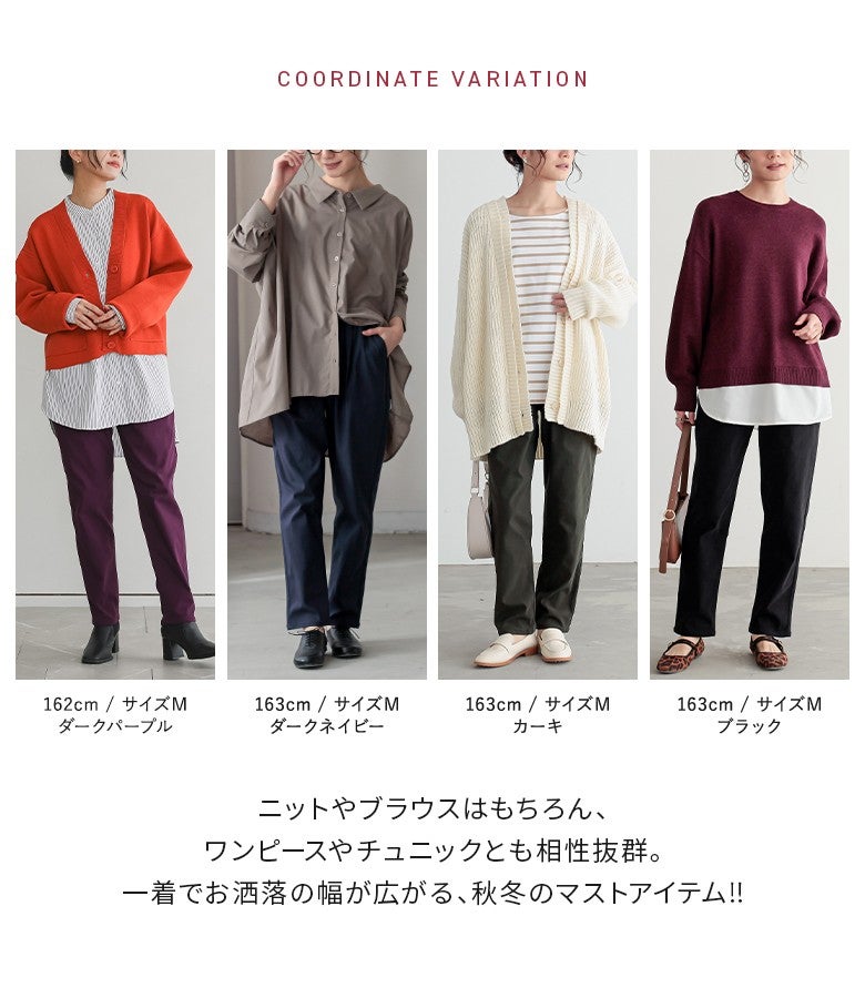 | 【S】 着丈(ウエスト穿き):くるぶしが隠れる位 ウエスト:ややゆったり ヒップ:ジャスト 太もも周り:ややゆったり 全体:スッキリ