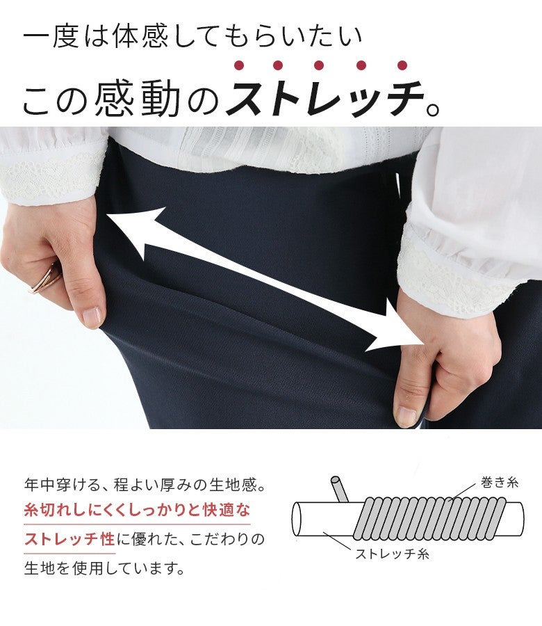 適度なゆとりがあり動きやすいです。ヒップ周りもラインを拾いすぎず、スッキリ穿けました!