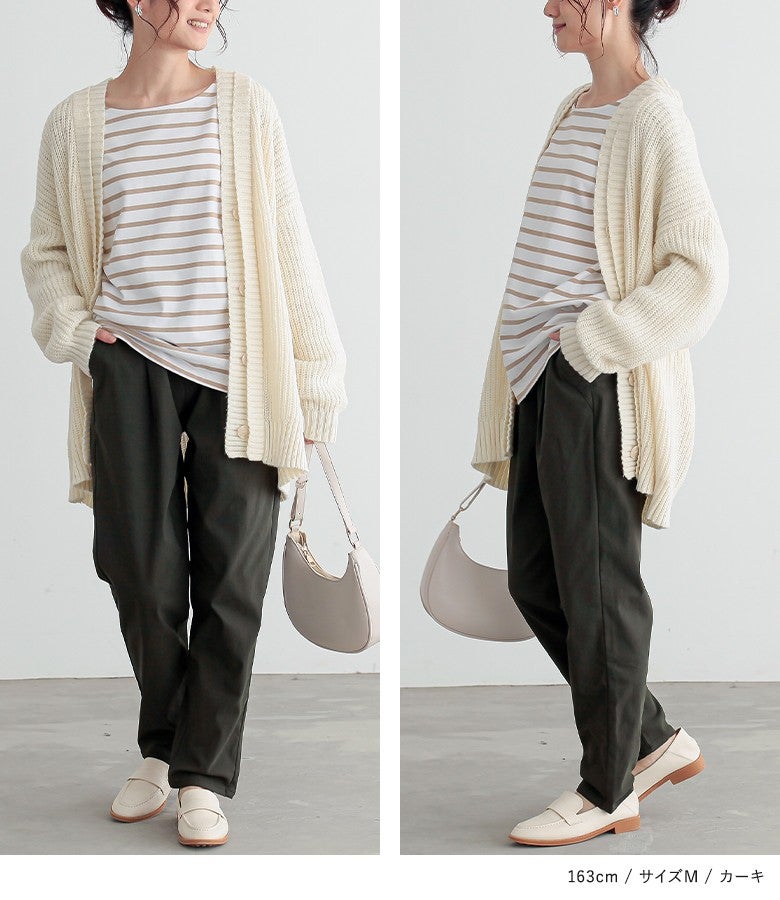 【L】 着丈(ウエスト穿き):くるぶしが隠れる位 ウエスト:ややゆったり ヒップ:ややゆったり 太もも周り:ややゆったり 全体:ややゆったり