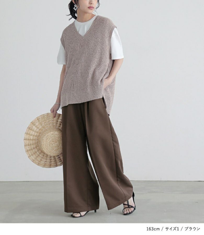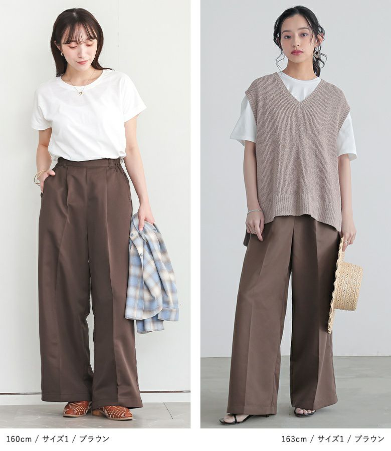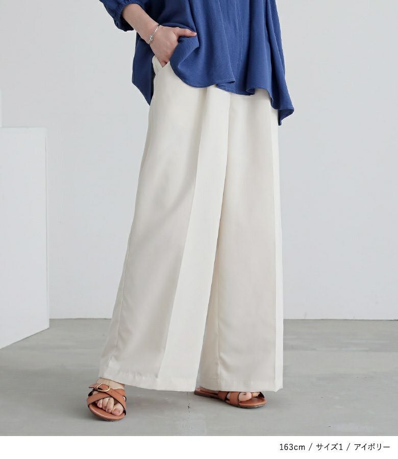 選べる2サイズ展開!すらっと"脚長効果"タックワイドスラックス。