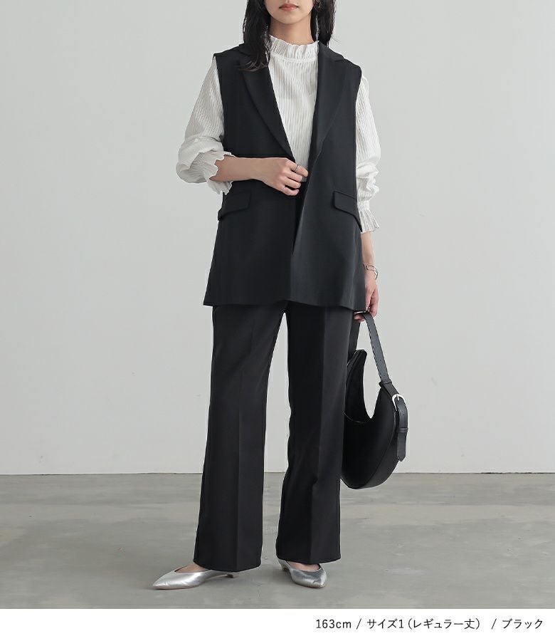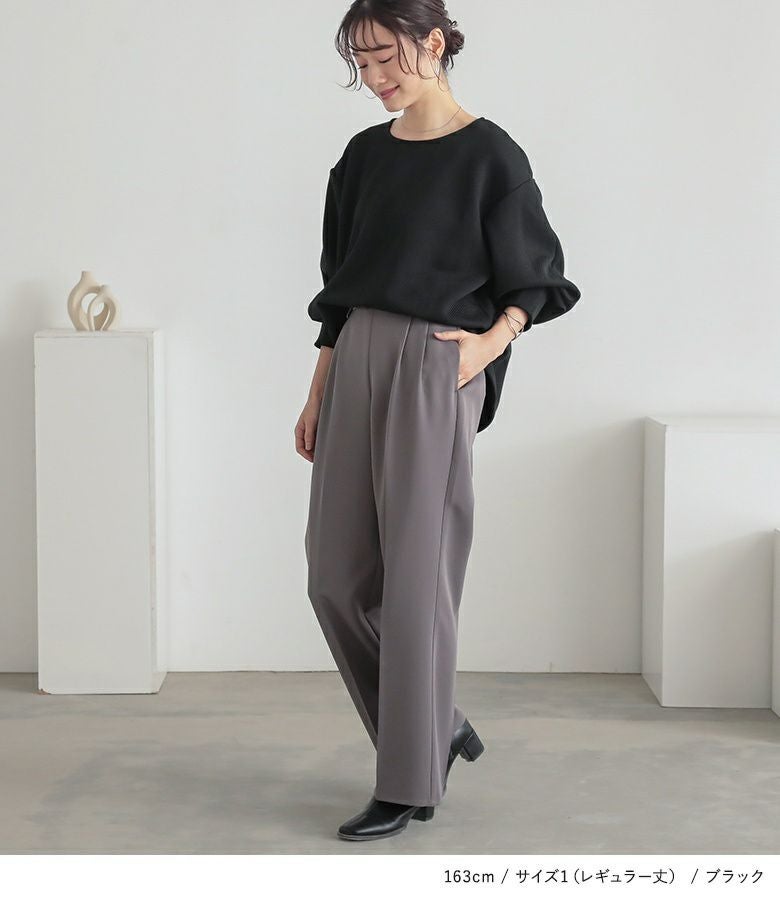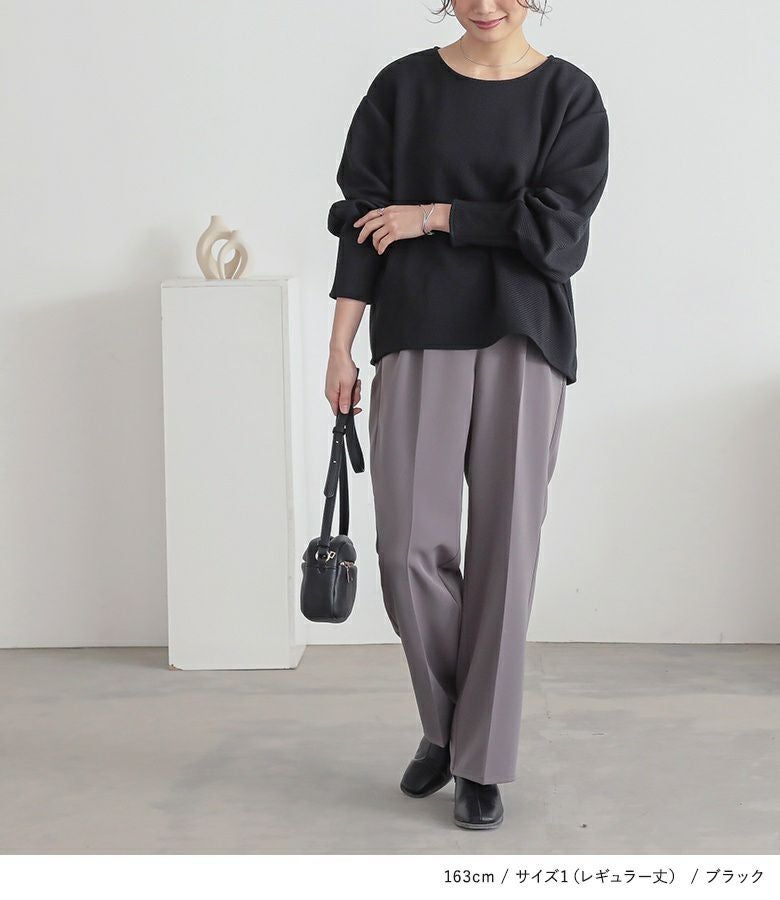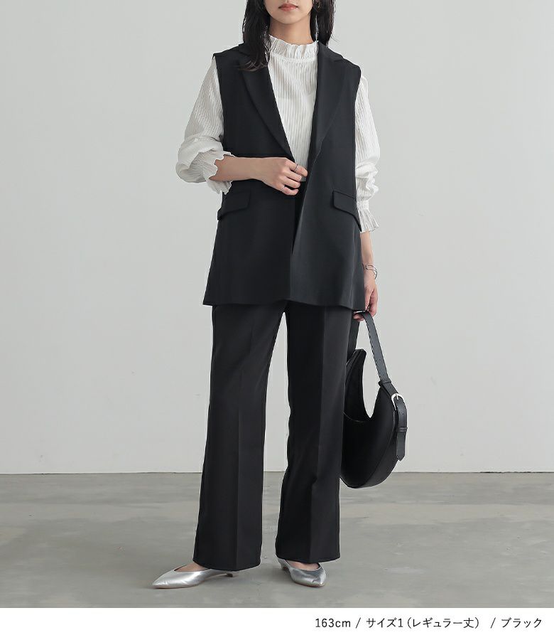 1(ショート丈):すっきりとキレイめな印象で着用できました。 1(レギュラー丈):レギュラー丈は着丈が少し長いのでヒール合わせなどで調節して穿きたいです。