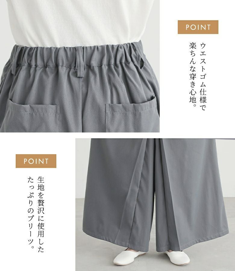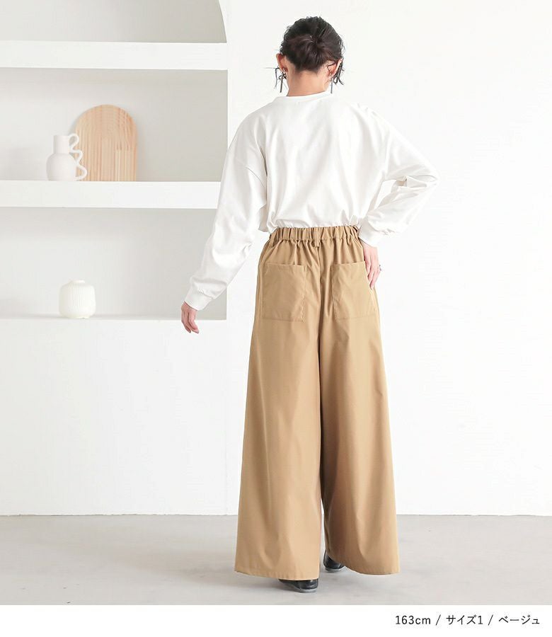 【普段着用】 Tops: M Bottoms: M | 【1】 着丈(ウエスト穿き):くるぶしが隠れる位 ウエスト:ややゆったり ヒップ:ややゆったり 太もも周り:ゆったり 全体:ややゆったり