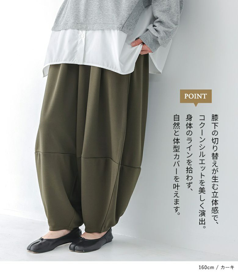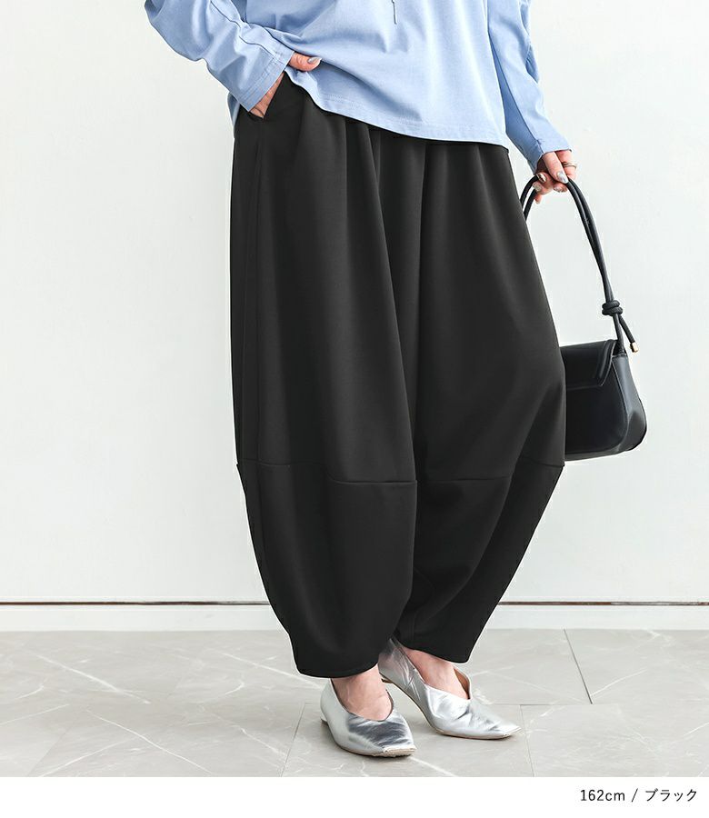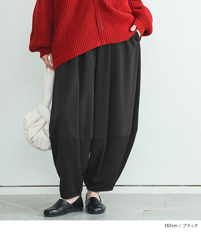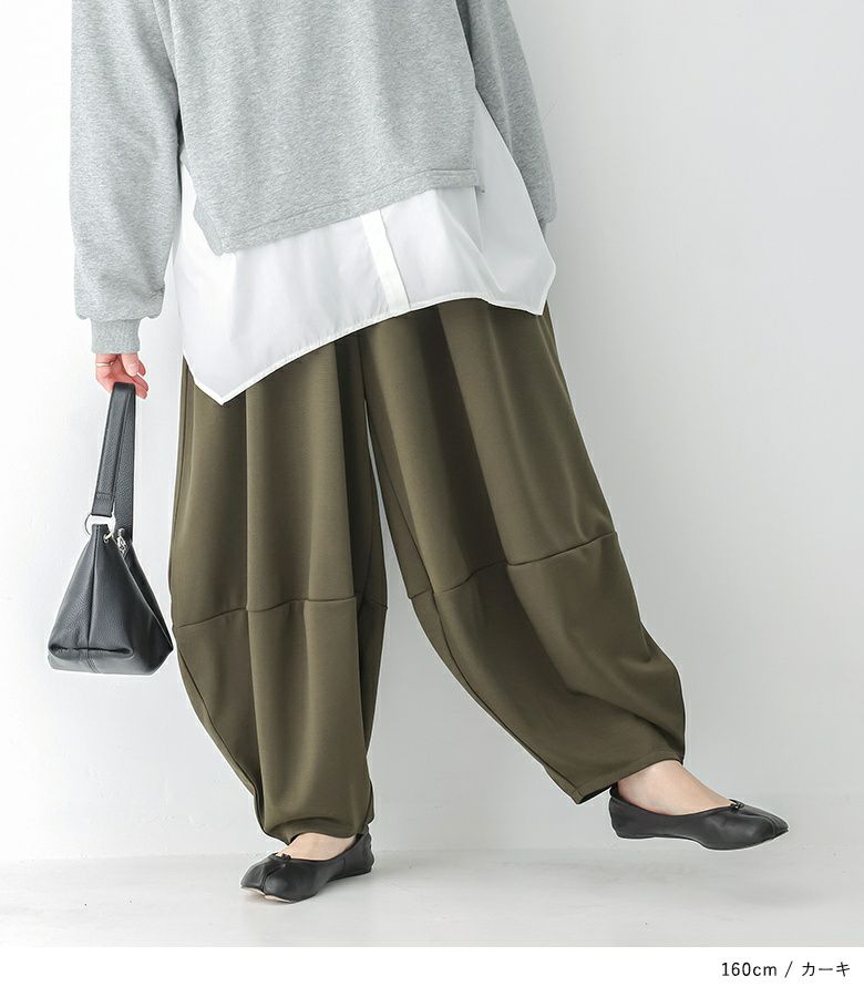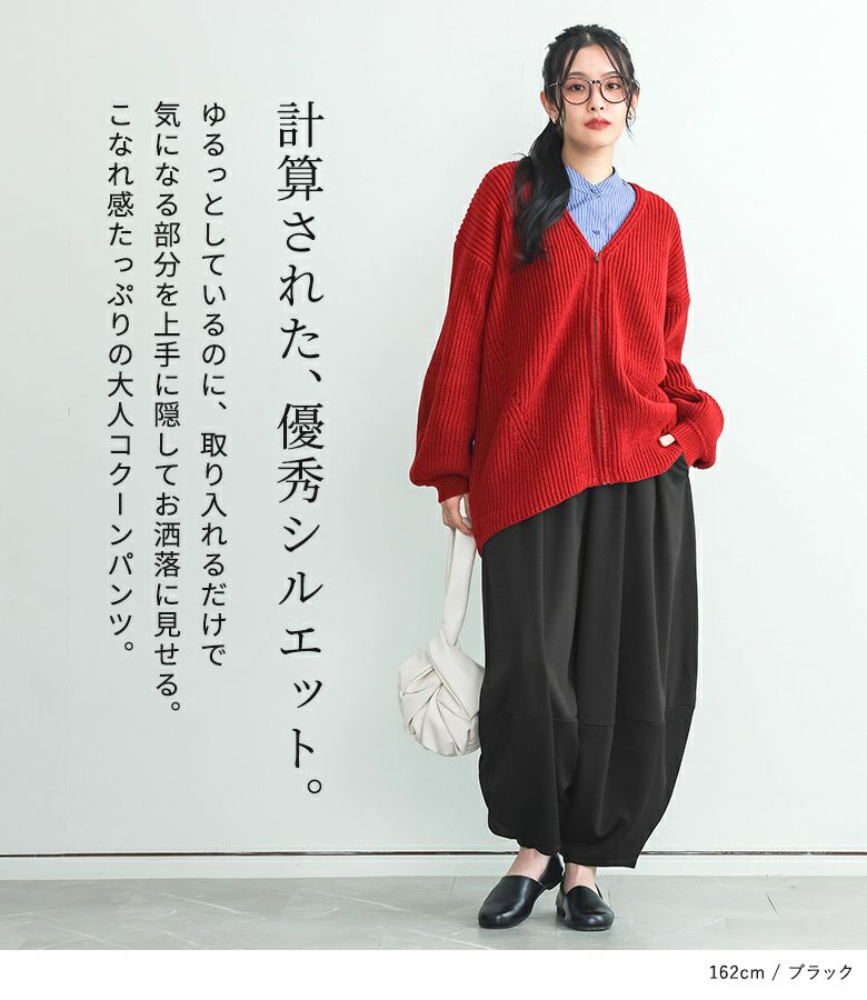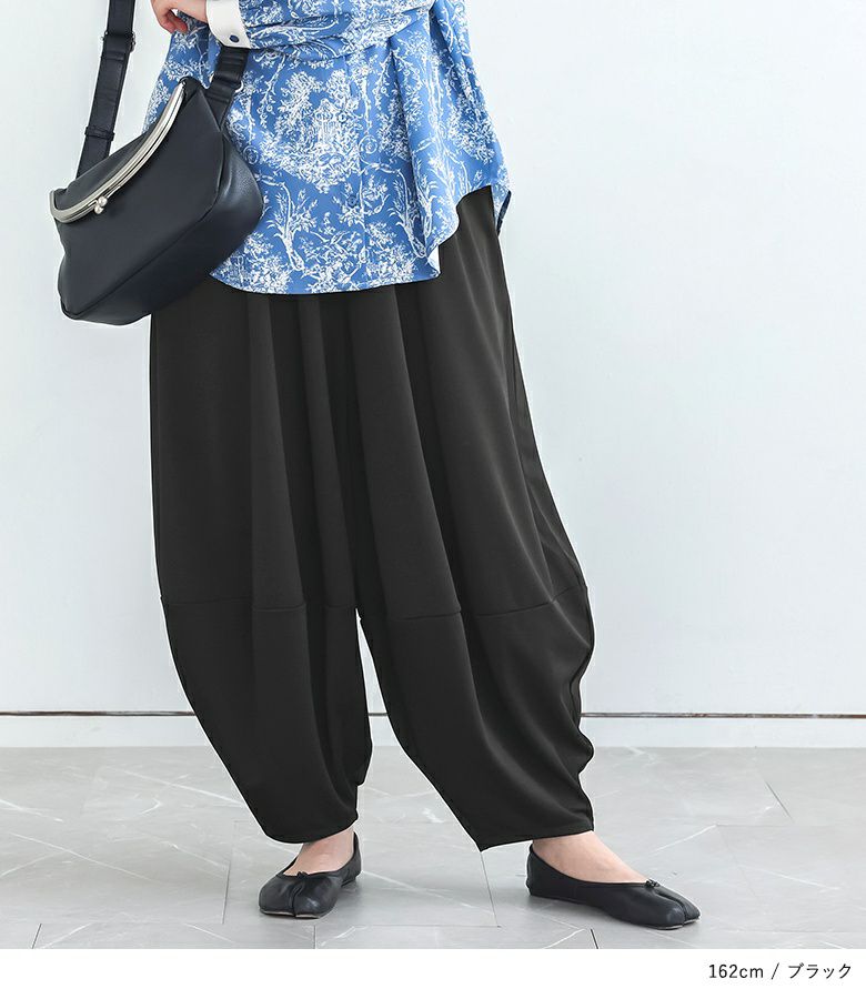 計算された優秀シルエットのコクーンパンツ。