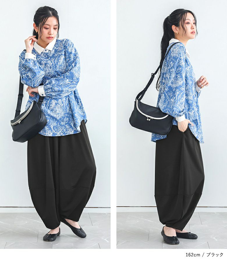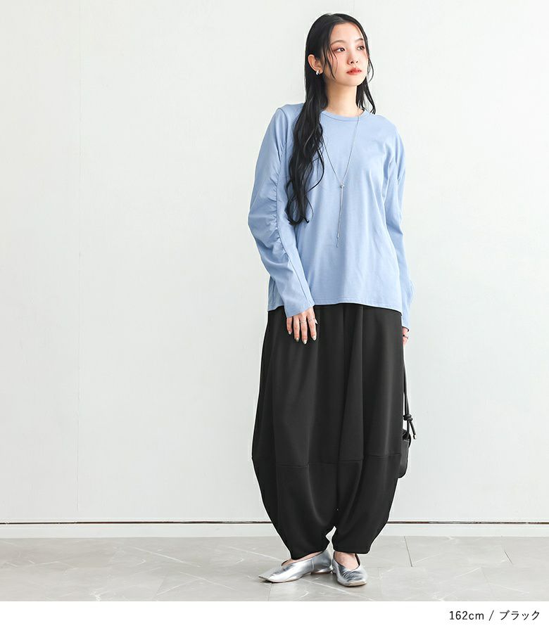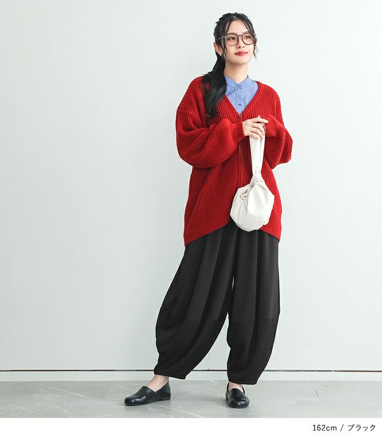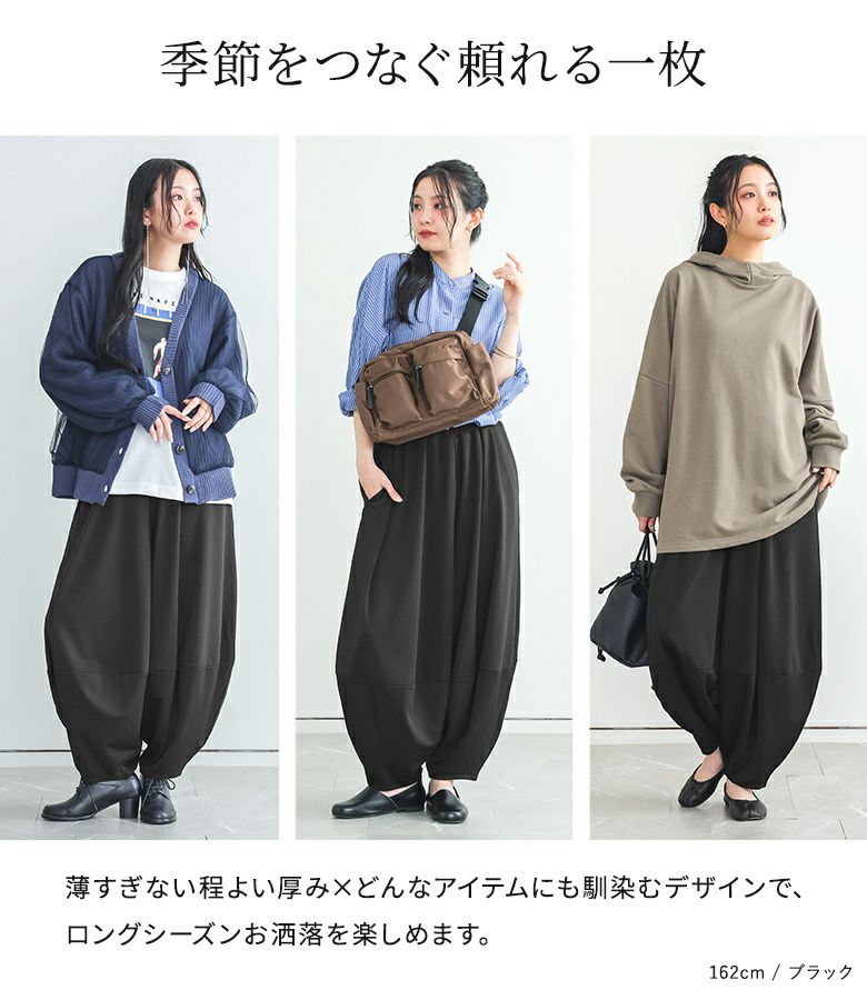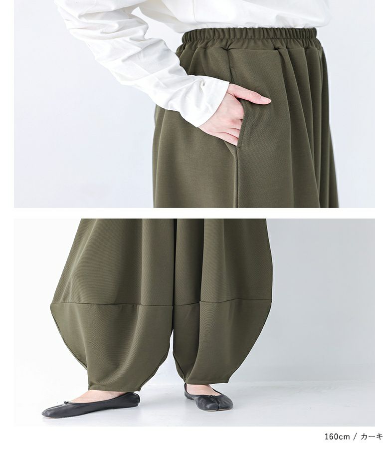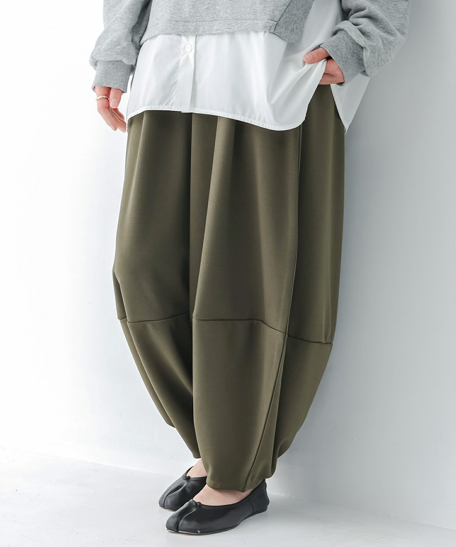 計算された優秀シルエットのコクーンパンツ。