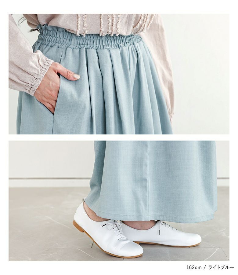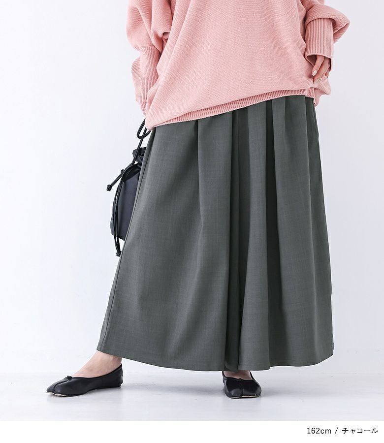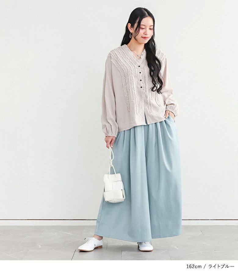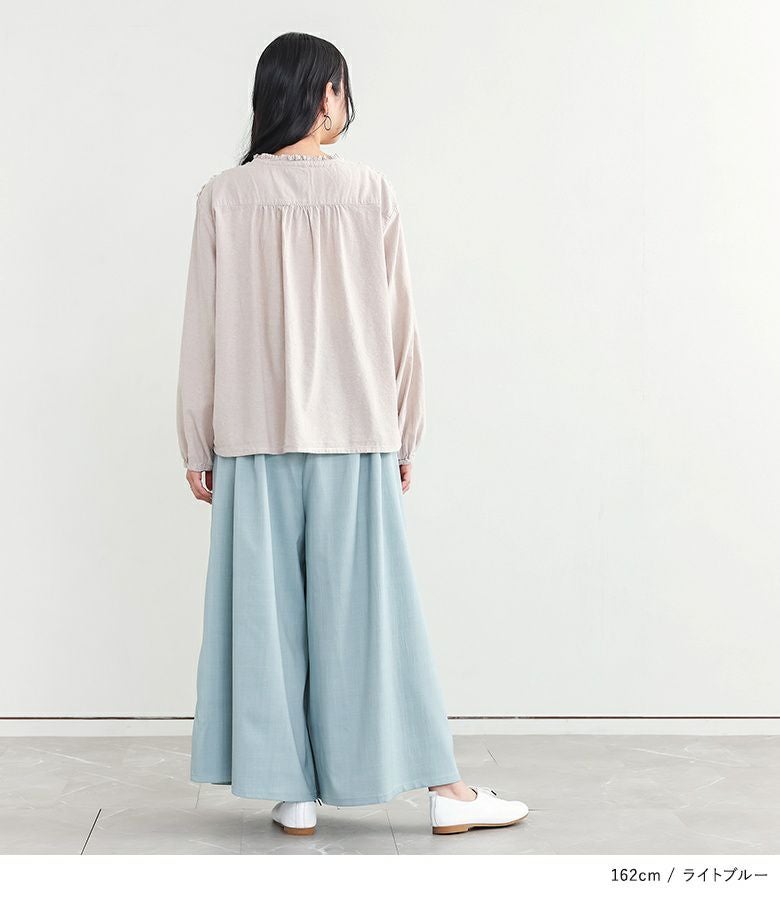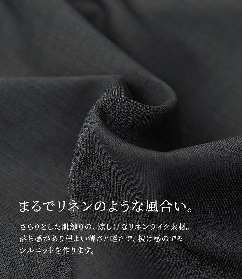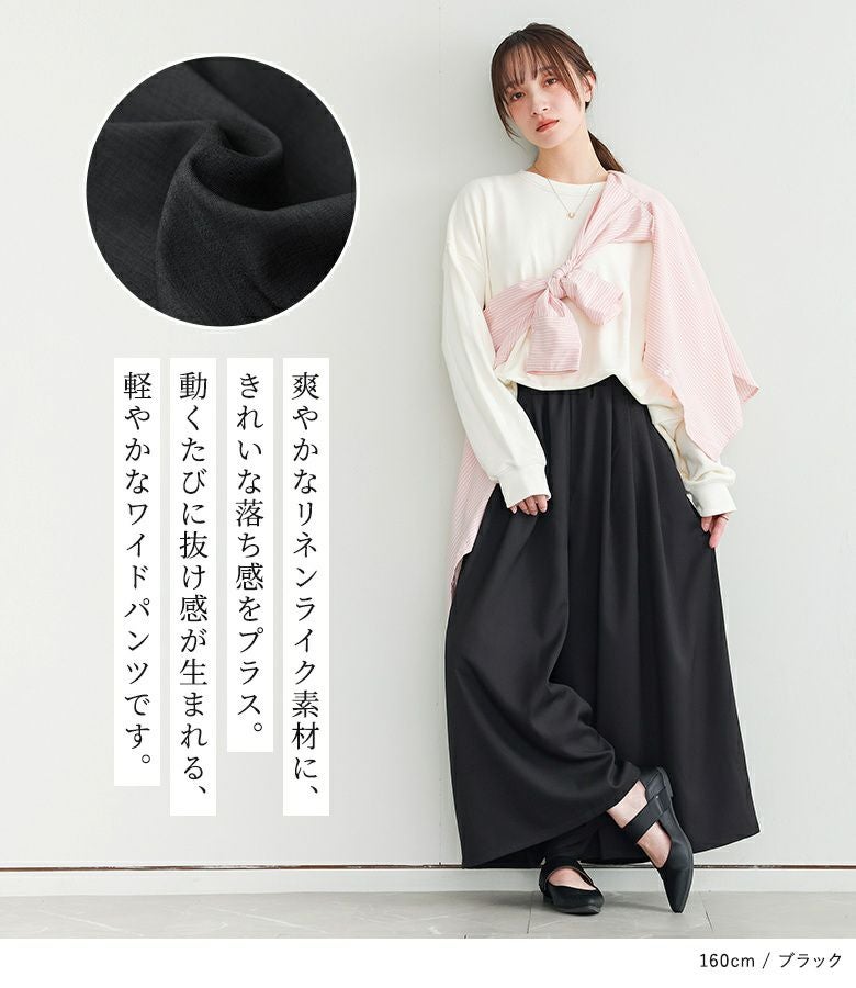 爽やかなリネンライク生地×きれいな落ち感の軽やかワイドパンツ。