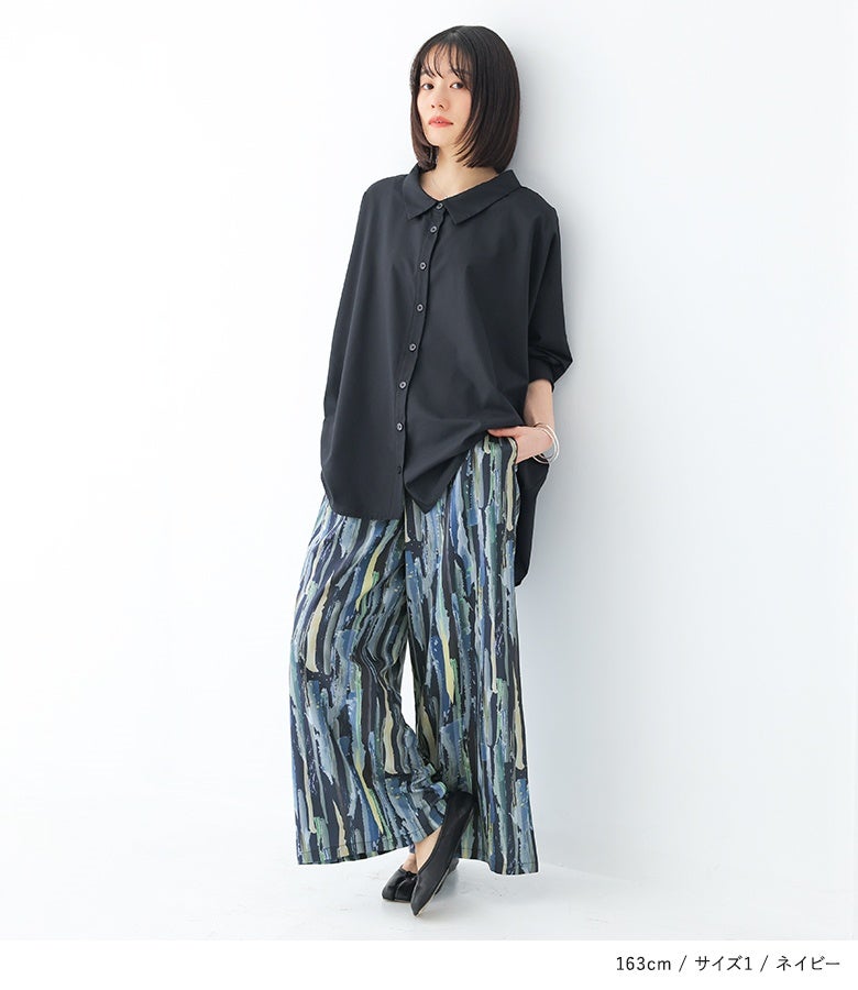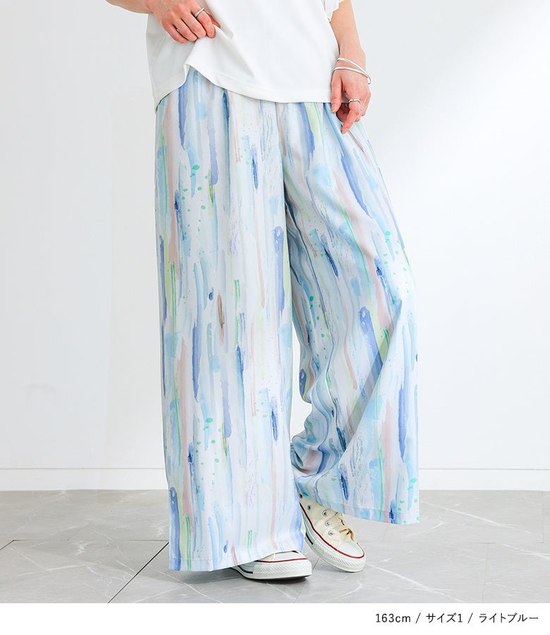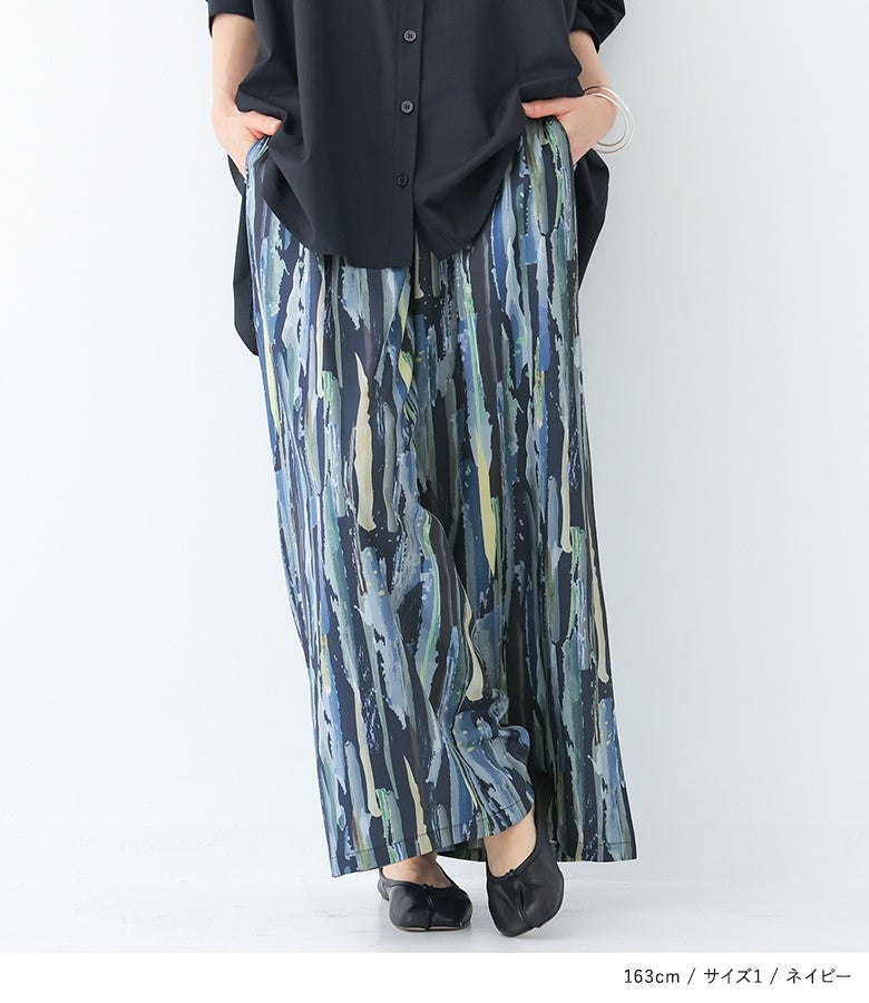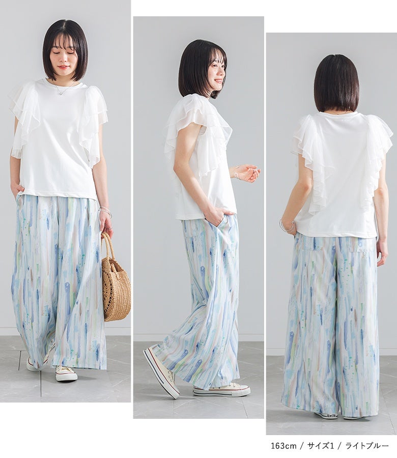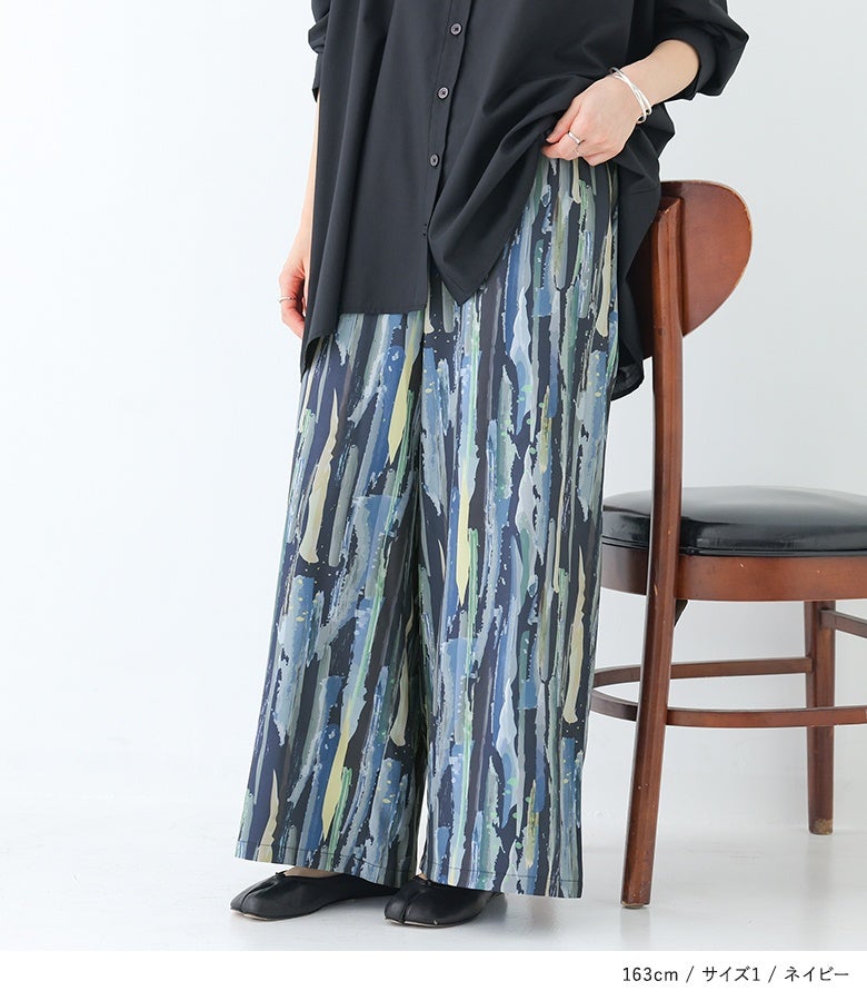 【2】 着丈(ウエスト穿き):かかと位 ウエスト:ゆったり ヒップ:ゆったり 太もも周り:ゆったり 全体:ゆったり