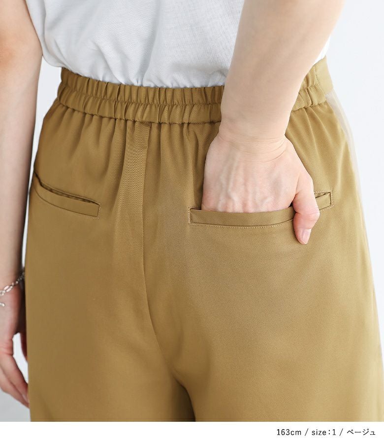・前ファスナーとバックゴムで、すっきりシルエットながらラクな穿き心地