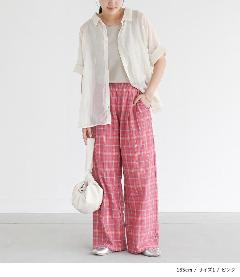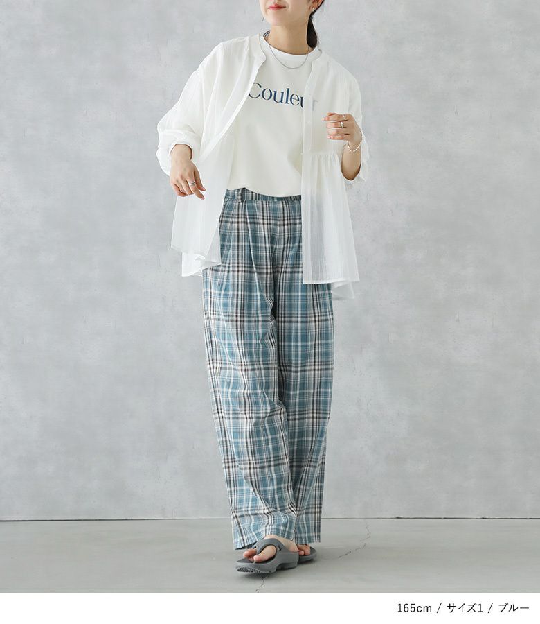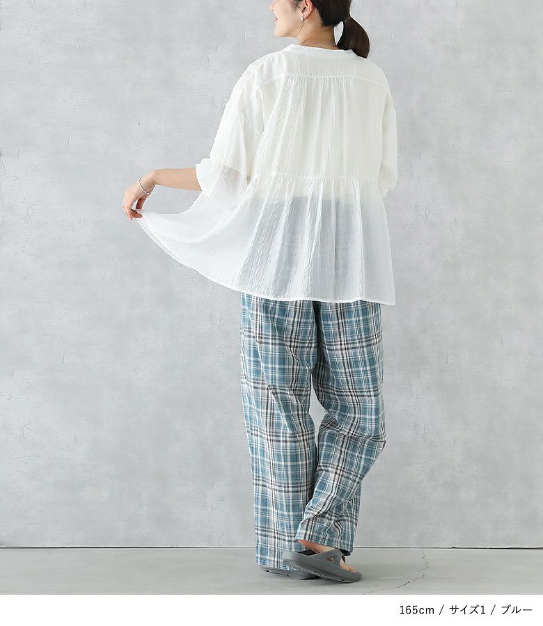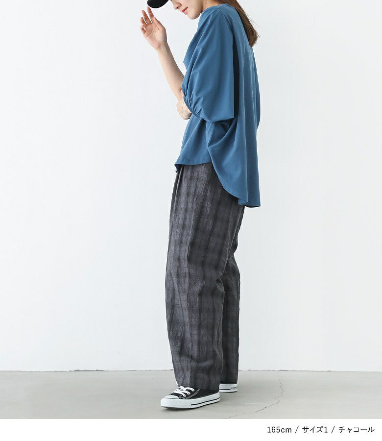 【普段着用】 Tops: M Bottoms: S/M | 【1】 着丈(ウエスト穿き):かかとから5cm余る位 ウエスト:ややゆったり ヒップ:ゆったり 太もも周り:ゆったり 全体:ゆったり