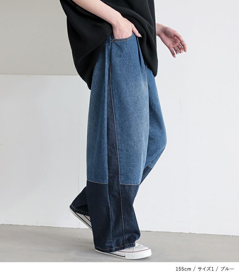 【普段着用】 Tops: M Bottoms: M/L | 【1】 着丈(ウエスト穿き):かかと位 ウエスト:ゆったり ヒップ:ゆったり 太もも周り:ゆったり 全体:ゆったり