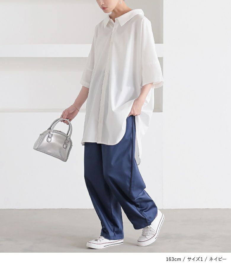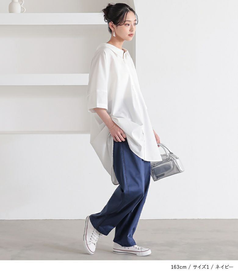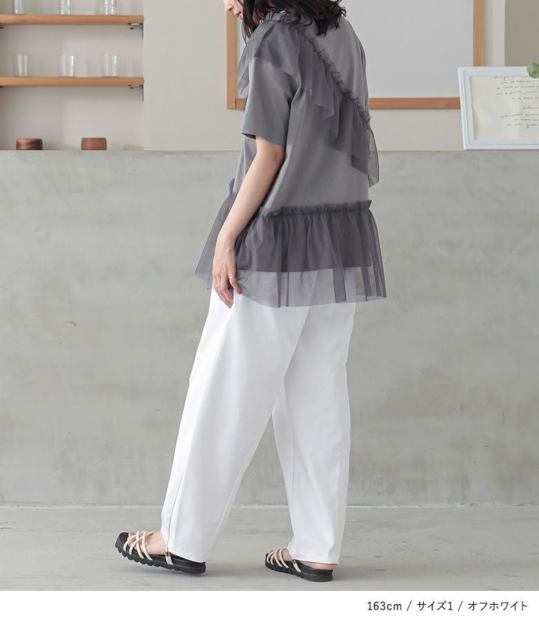 【普段着用】 Tops: S/M Bottoms: S/M | 【1】 着丈(ウエスト穿き):かかと位 ウエスト:ゆったり ヒップ:ゆったり 太もも周り:ゆったり 全体:ゆったり