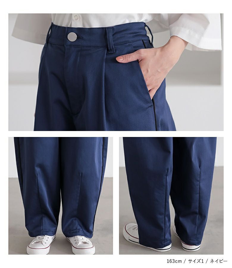 【2】 着丈(ウエスト穿き):かかとから3cm余る位 ウエスト:ゆったり ヒップ:ゆったり 太もも周り:ゆったり 全体:ゆったり