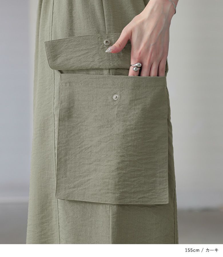 とても軽く、生地もサラッとしていて暑い時期には重宝してくれそうです。ダボつきがちなワイドパンツもサイドの大きなポケットがアクセントになっていいと思います。