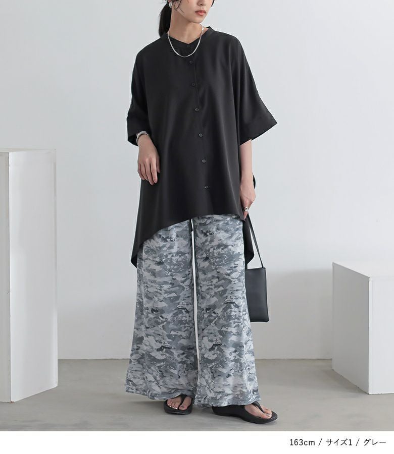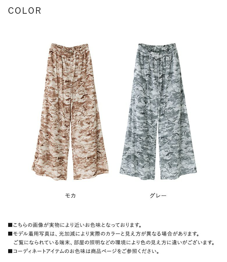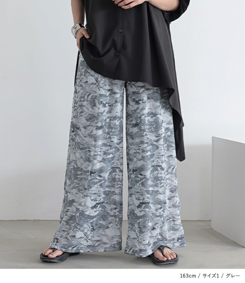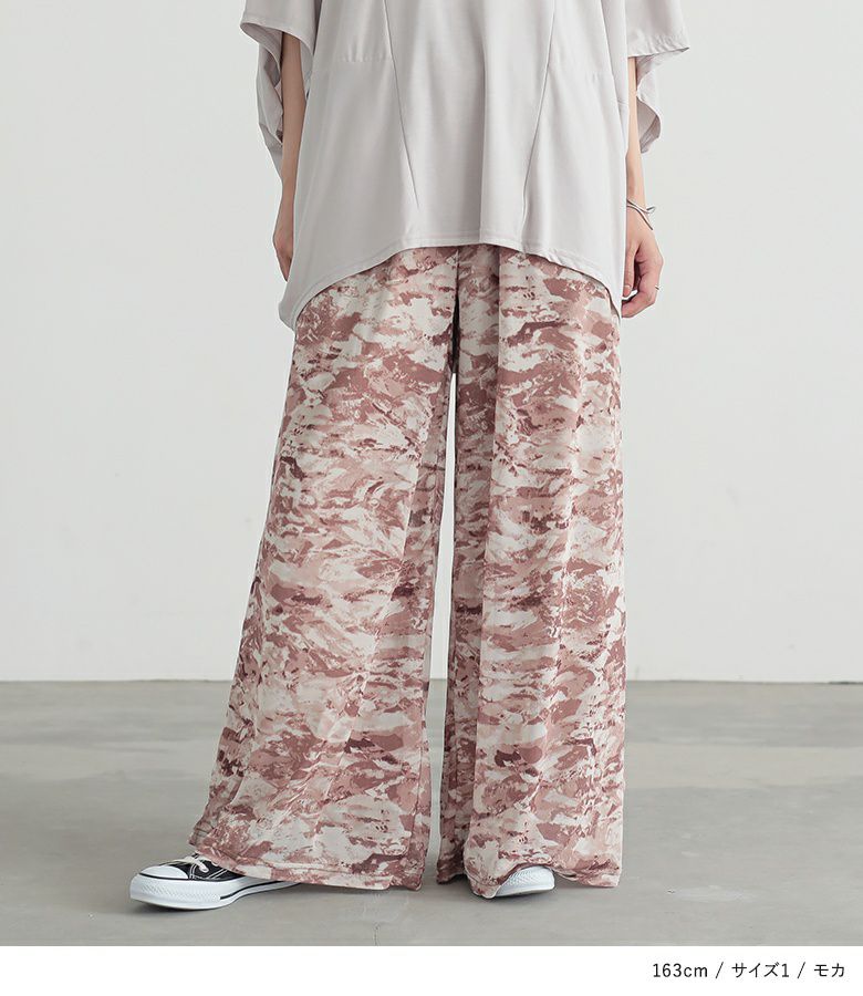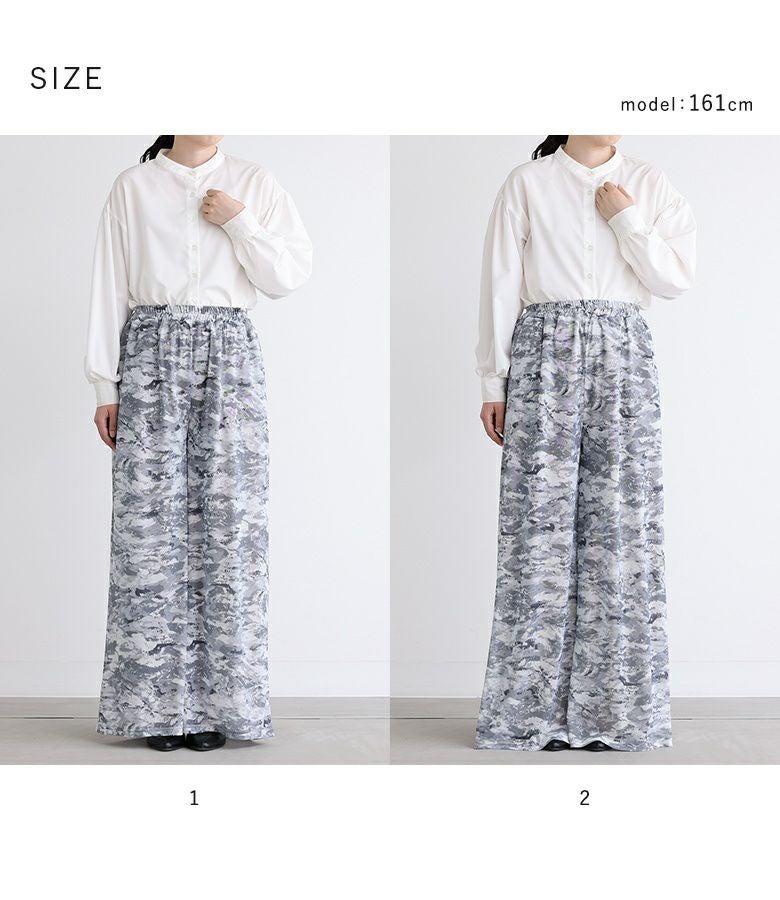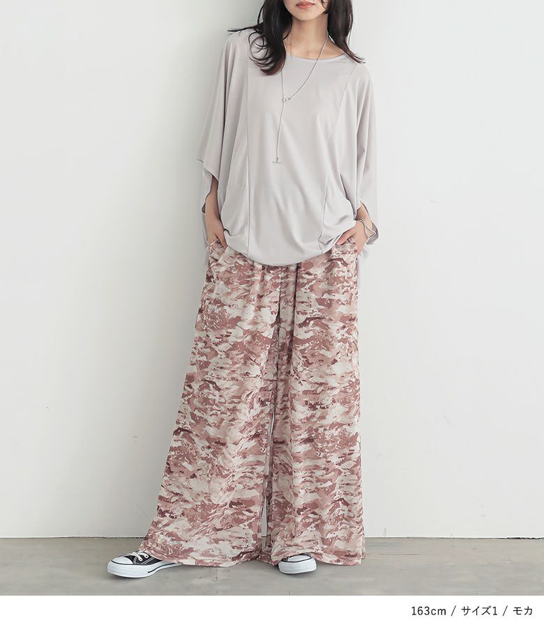【普段着用】 Tops: M Bottoms: M/L | 【1】 着丈(ウエスト穿き):ちょうどくるぶし位 ウエスト:ややゆったり ヒップ:ゆったり 太もも周り:ゆったり 全体:ゆったり