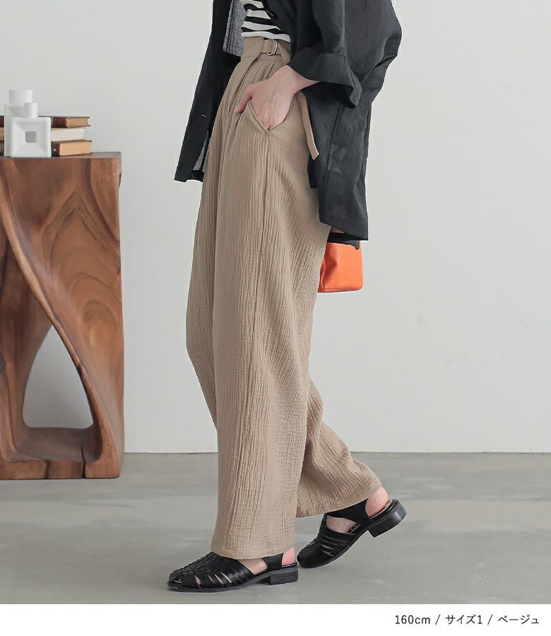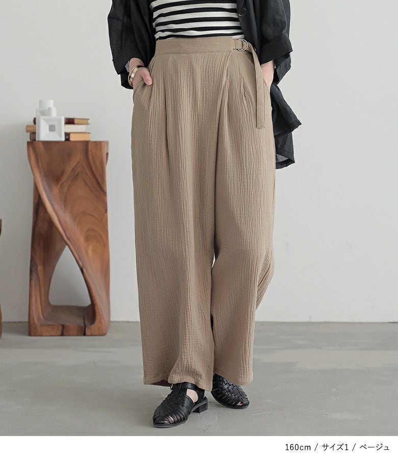 【普段着用】 Tops: M Bottoms: M/L | 【1】 着丈(ウエスト穿き):くるぶしが隠れる位 ウエスト:ジャスト ヒップ:ゆったり 太もも周り:ゆったり 全体:スッキリ