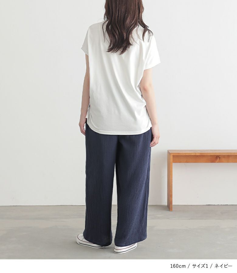 【2】 着丈(ウエスト穿き):かかと位 ウエスト:ゆったり ヒップ:ゆったり 太もも周り:ゆったり 全体:ゆったり