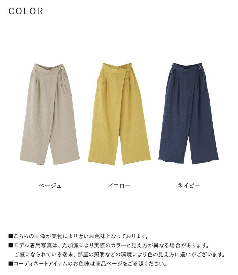 【普段着用】 Tops: L Bottoms: L | 【1】 着丈(ウエスト穿き):くるぶしが隠れる位 ウエスト:ジャスト ヒップ:ややゆったり 太もも周り:ややゆったり 全体:スッキリ