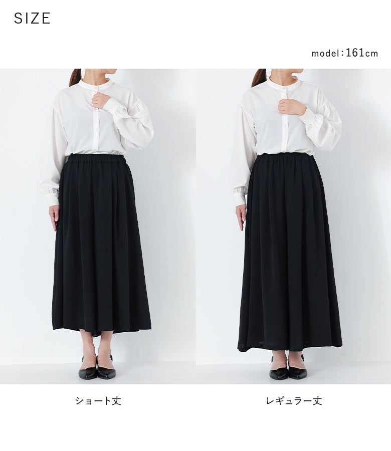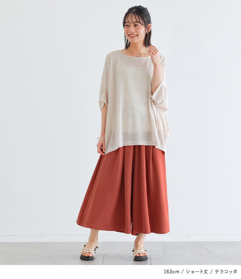 【普段着用】 Tops: LL Bottoms:LL | 【フリーサイズ】 ◆ショート丈 着丈(ウエスト穿き):くるぶし上5cm位 ◆レギュラー丈 着丈(ウエスト穿き):ちょうどくるぶし位 ウエスト:ゆったり ヒップ:ゆったり 太もも周り:ゆったり 全体:ゆったり