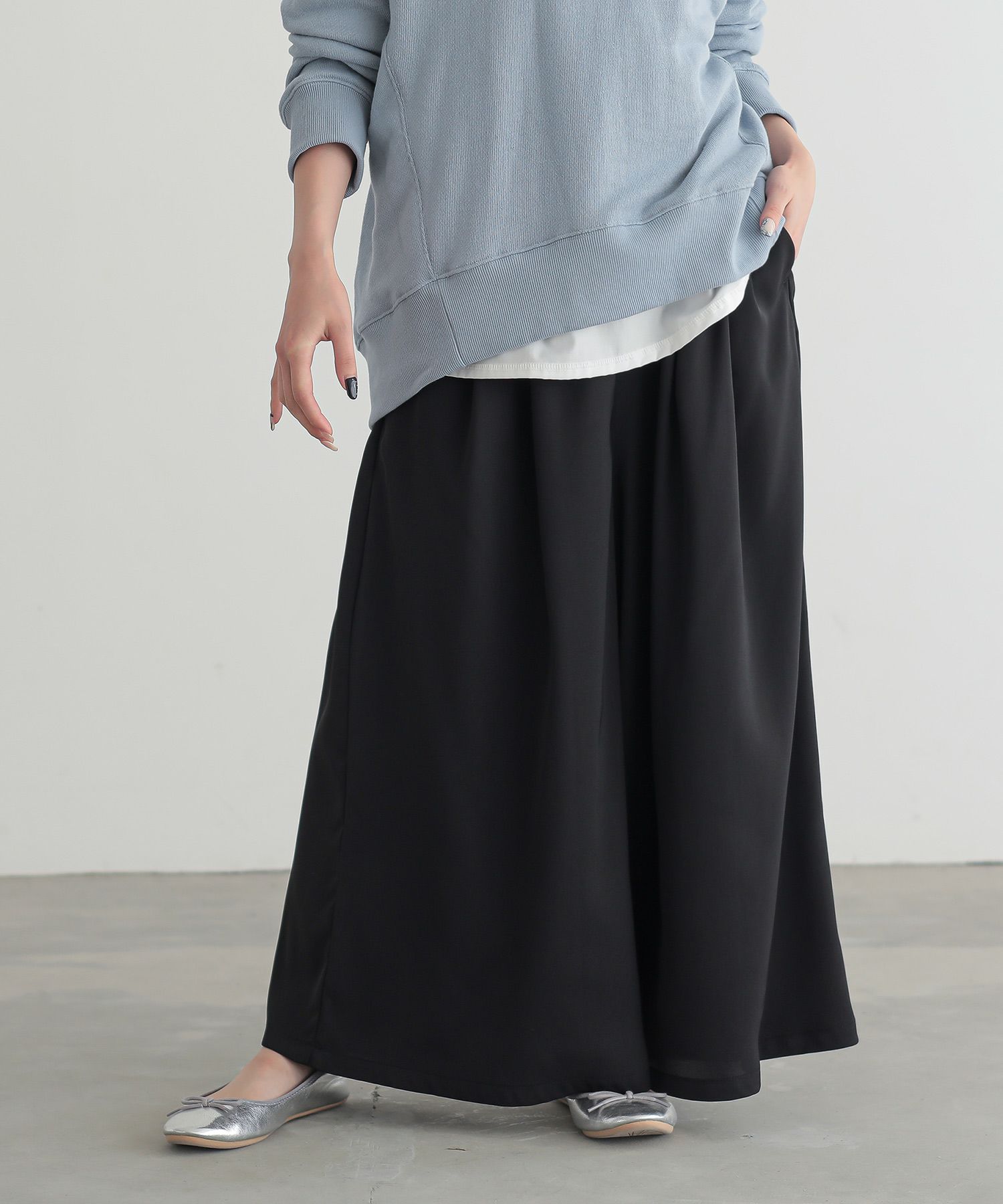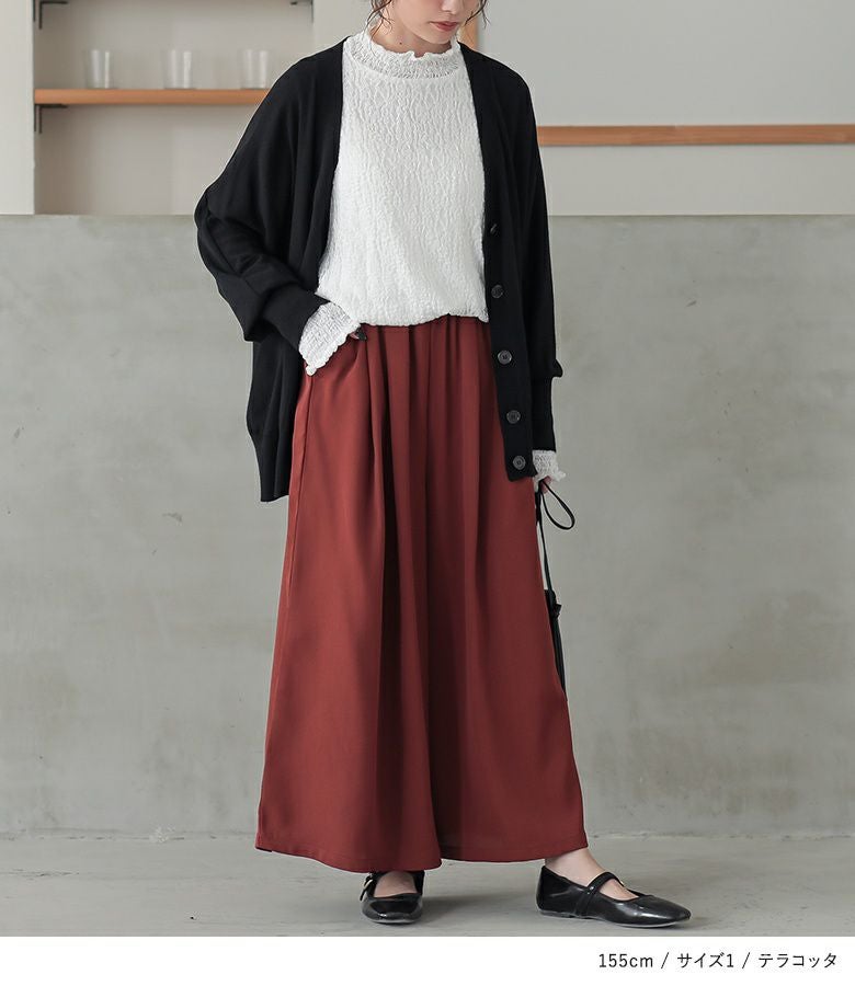 【普段着用】 Tops: S/M Bottoms: S/M | 【1】 着丈(ウエスト穿き):くるぶしが隠れる位 ウエスト:ゆったり ヒップ:ゆったり 太もも周り:ゆったり 全体:ゆったり