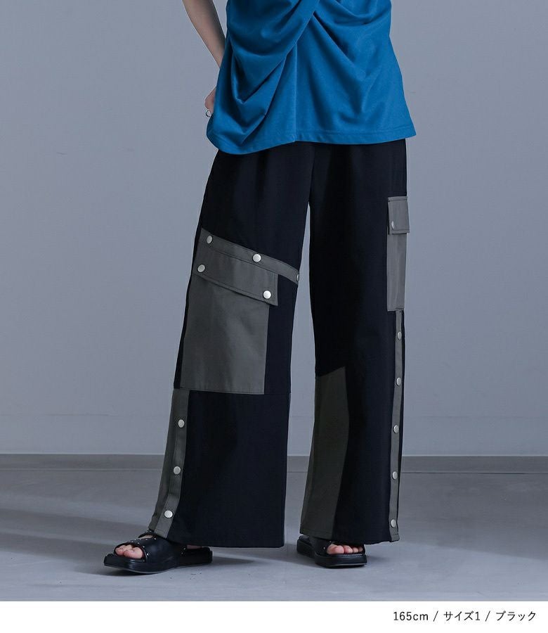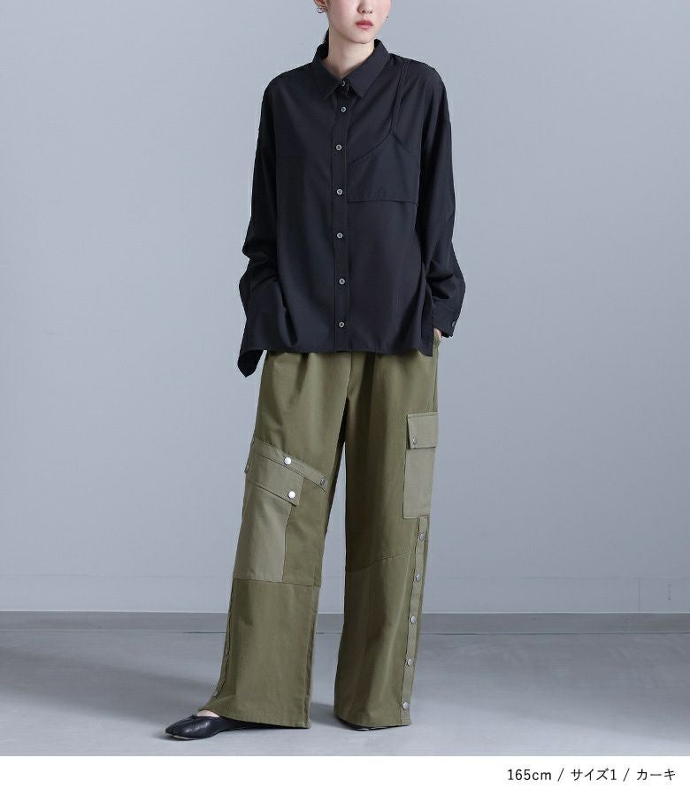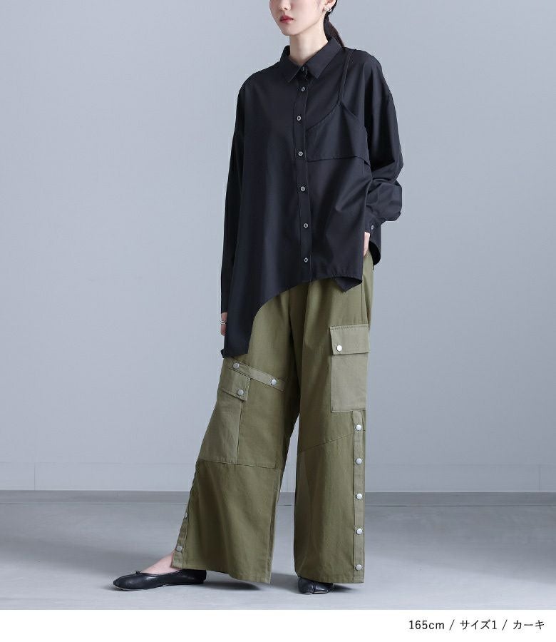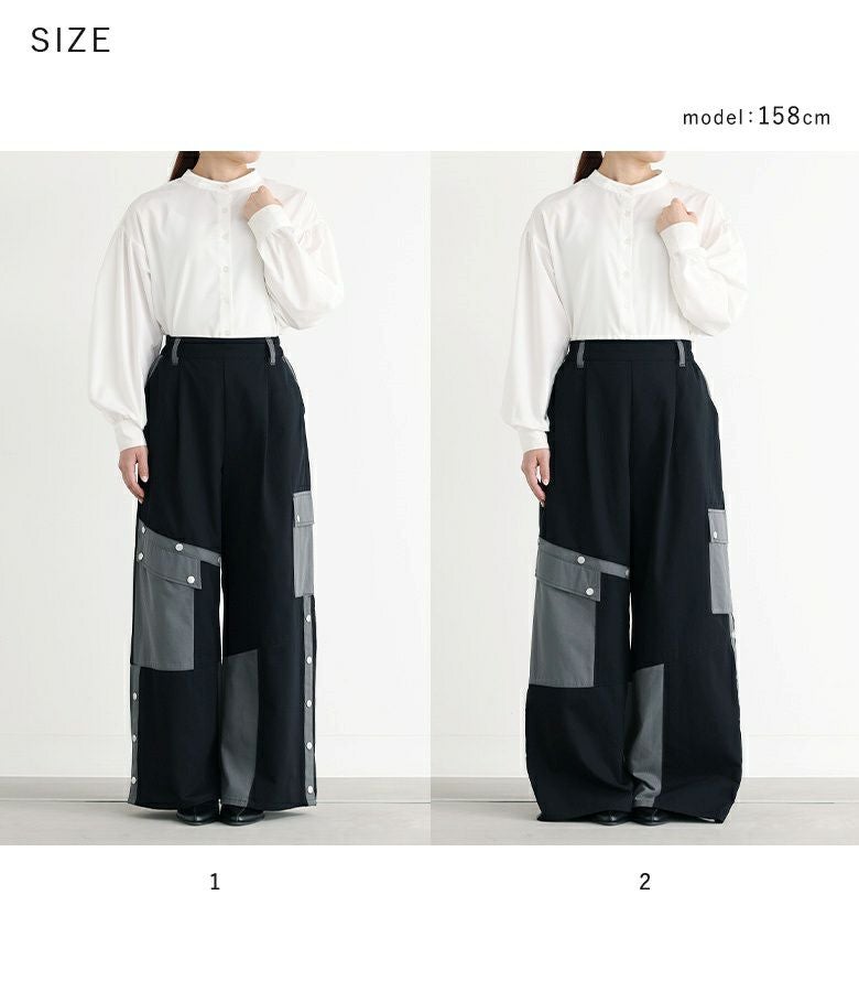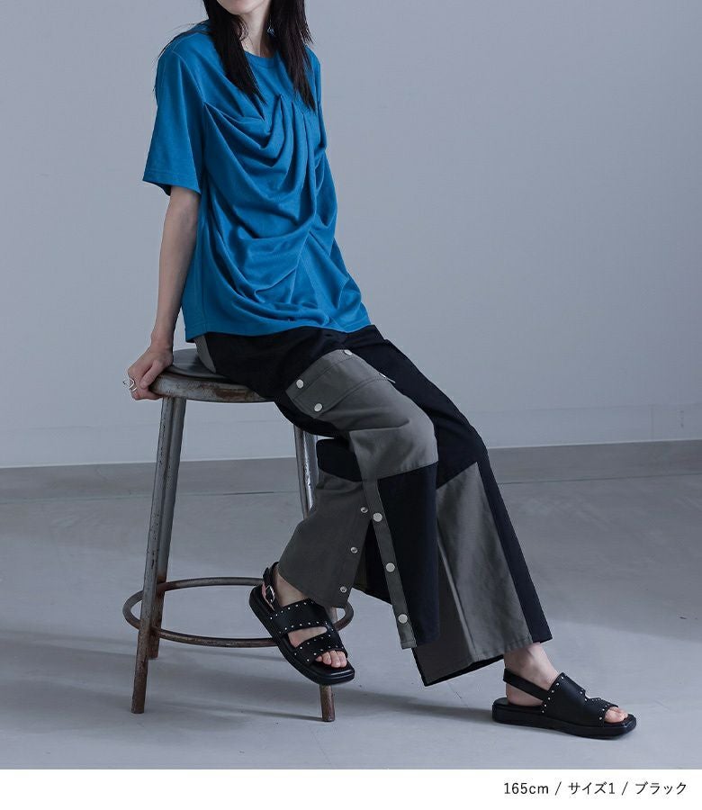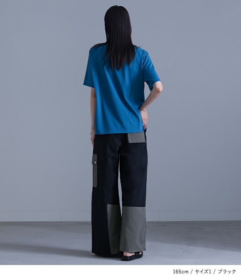 【普段着用】 Tops: M Bottoms: M | 【1】 着丈(ウエスト穿き):かかと上1cm位 ウエスト:ジャスト ヒップ:ゆったり 太もも周り:ゆったり 全体:ややゆったり