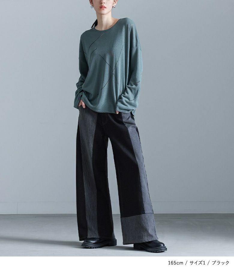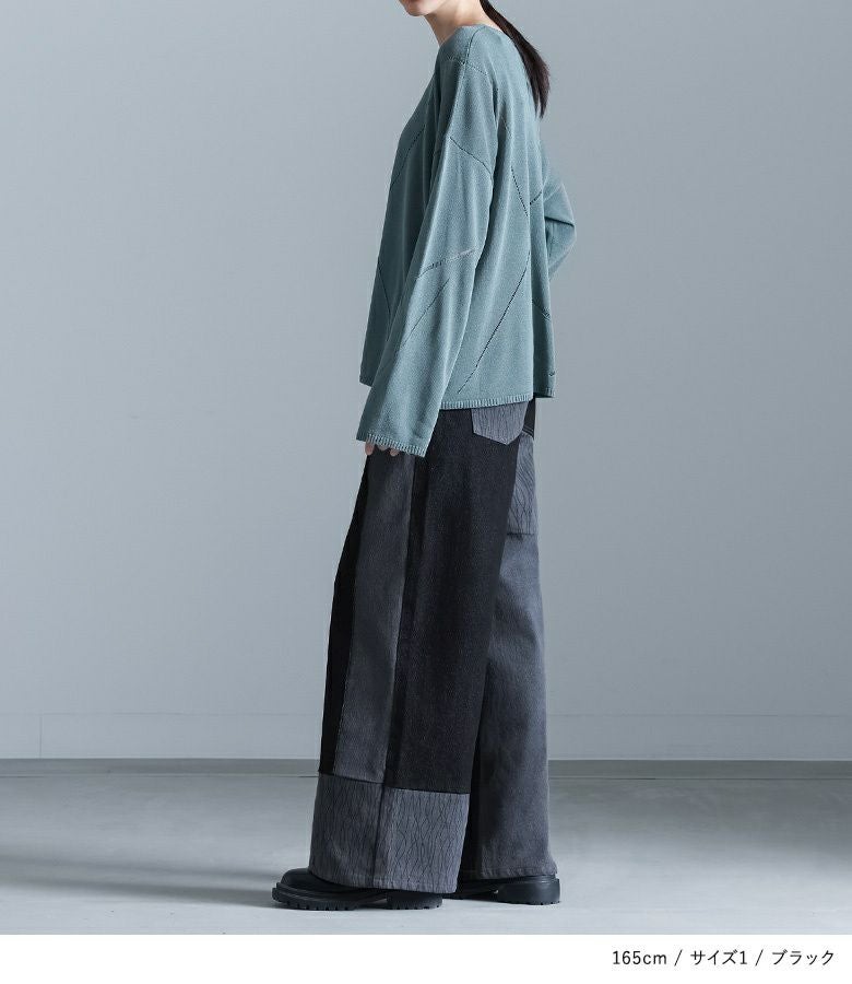 【2】 着丈(ウエスト穿き):かかと位 ウエスト:ゆったり ヒップ:ゆったり 太もも周り:ゆったり 全体:ゆったり