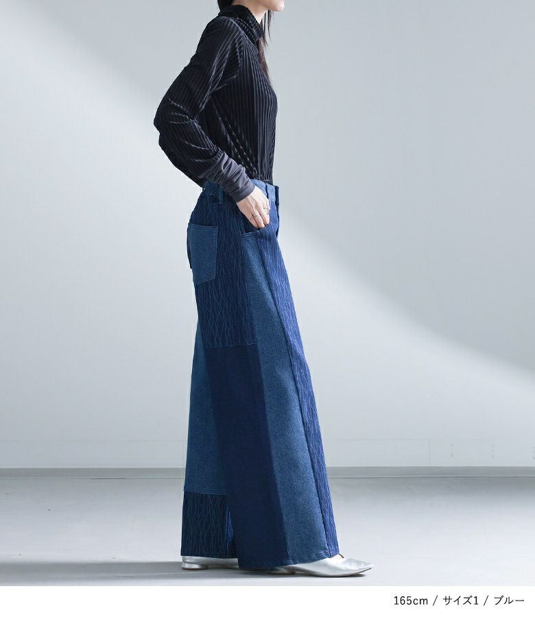 【普段着用】 Tops: M Bottoms: M/L | 【1】 着丈(ウエスト穿き):かかと位 ウエスト:ややゆったり ヒップ:ややゆったり 太もも周り:ゆったり 全体:ややゆったり