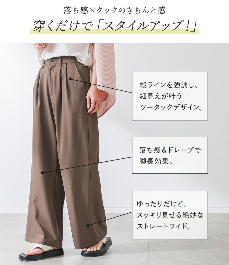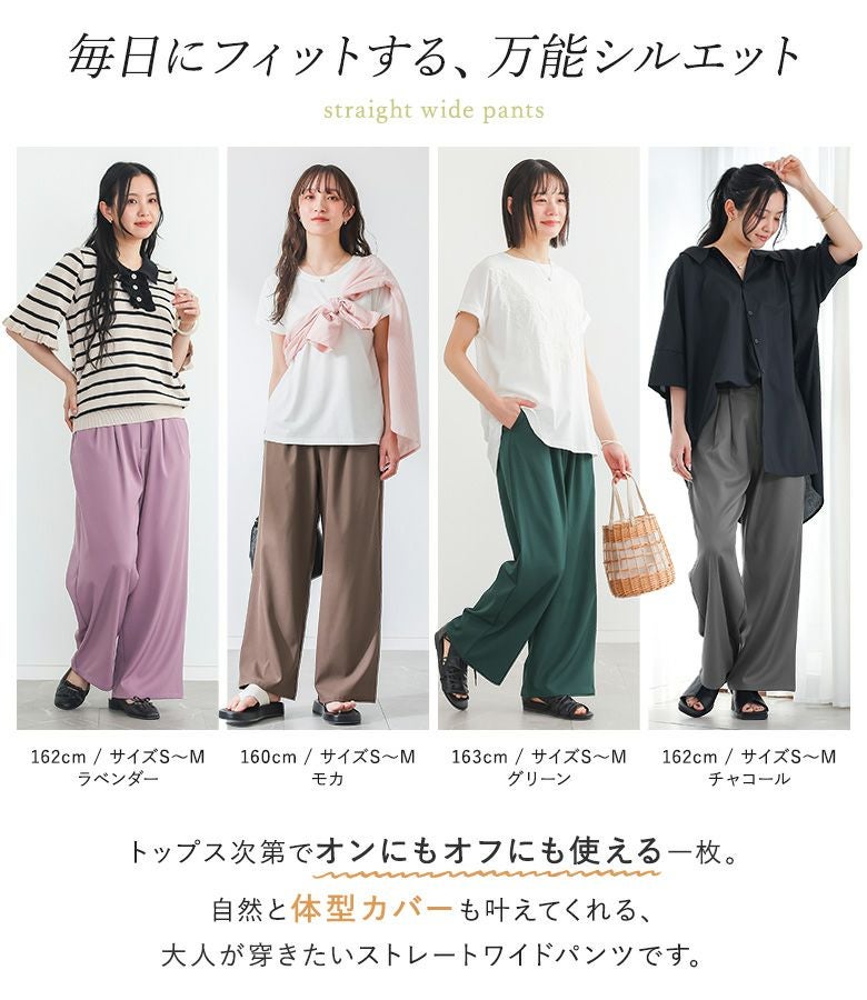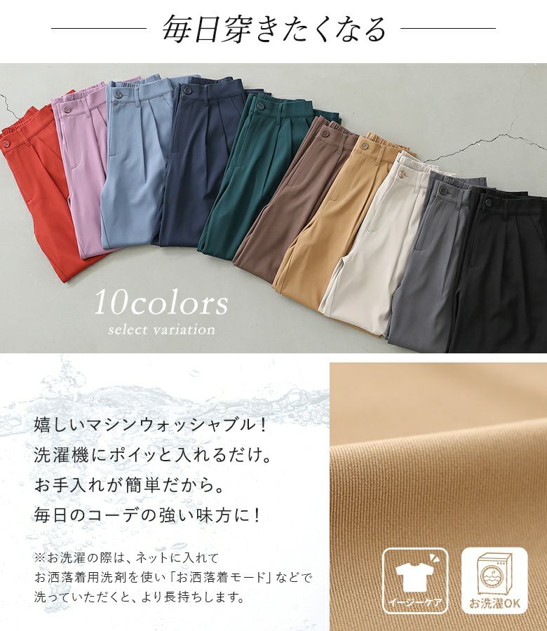 選べる3サイズ展開!嬉しいマシンウォッシャブル♪ゆったりだけどすっきり見せる、絶妙ストレートワイドパンツ。