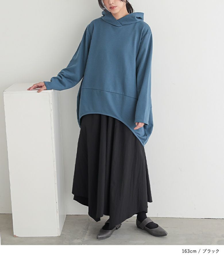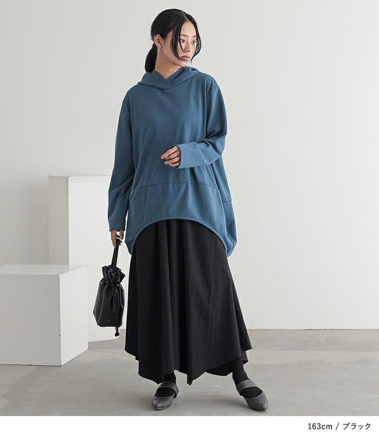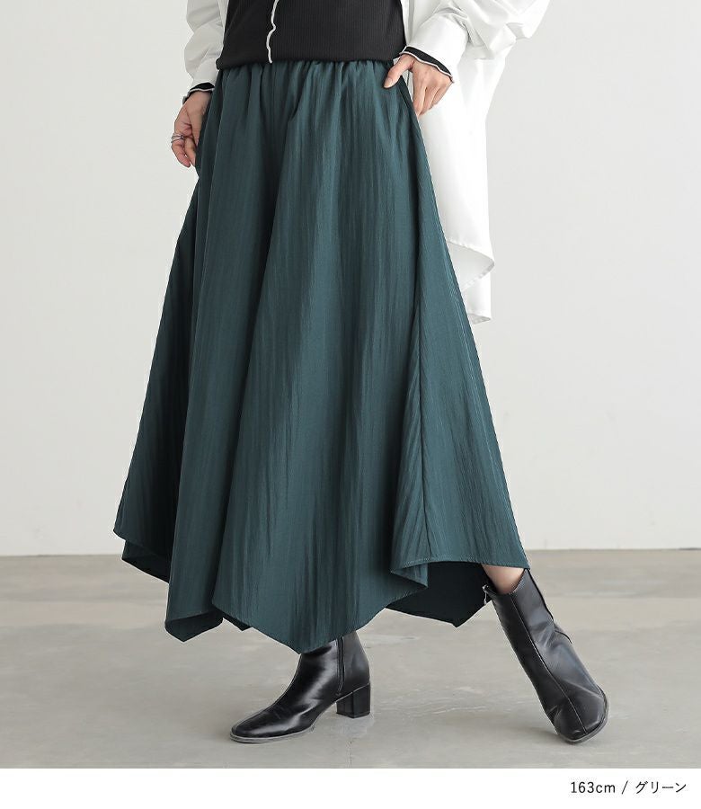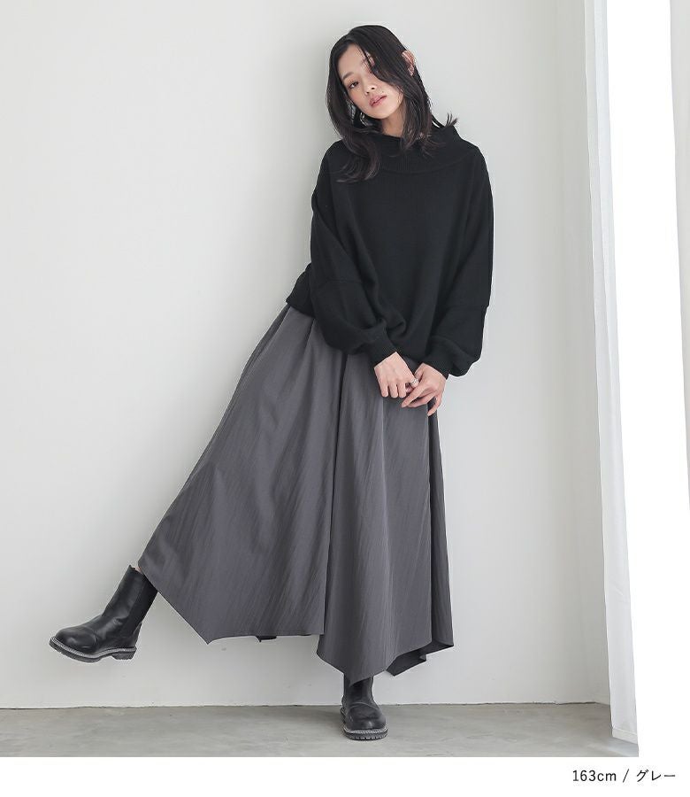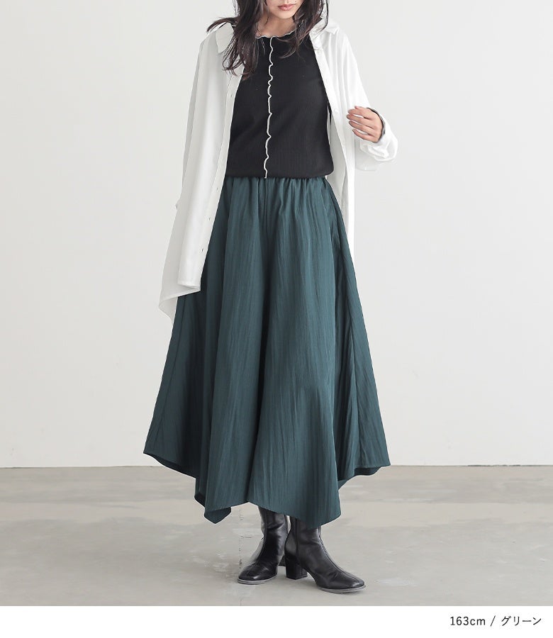 ウエストがゴム仕様で窮屈感なく着用できました。体型カバーも叶うのに、落ち感のある素材で上品見えするのが嬉しいです。