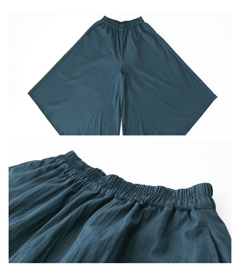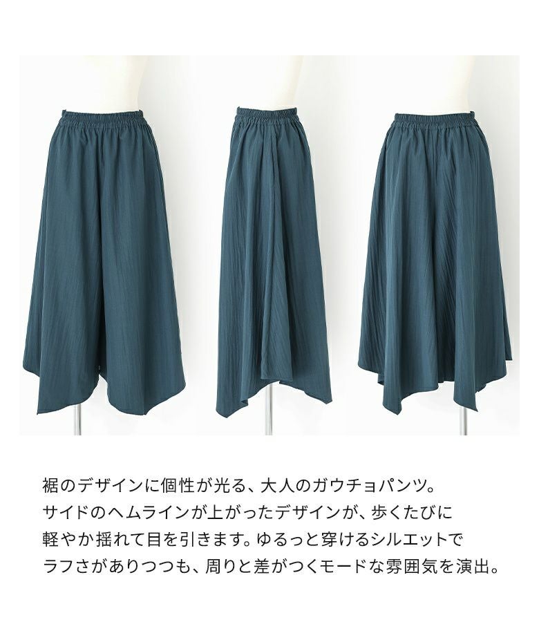 裾のデザインに個性が光る、大人のガウチョパンツ。