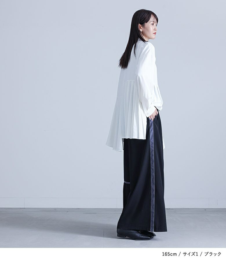 【普段着用】 Tops: M Bottoms: M | 【1】 着丈(ウエスト穿き):かかと上1cm位 ウエスト:ジャスト ヒップ:ゆったり 太もも周り:ゆったり 全体:ゆったり