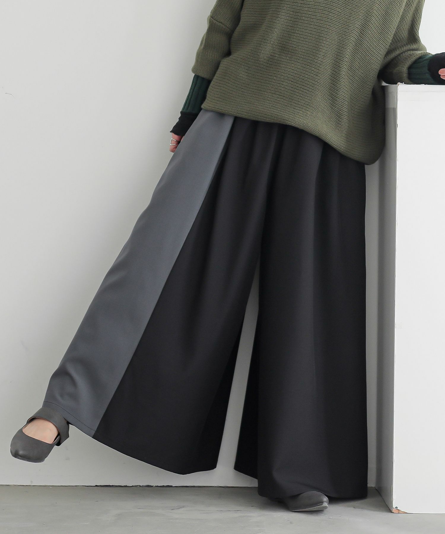 微配色デザインがモードなワイドパンツ。