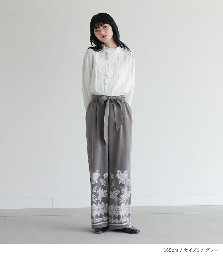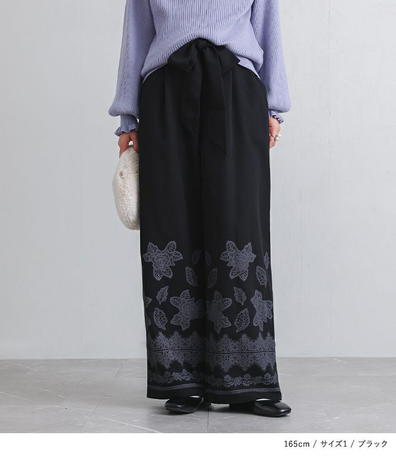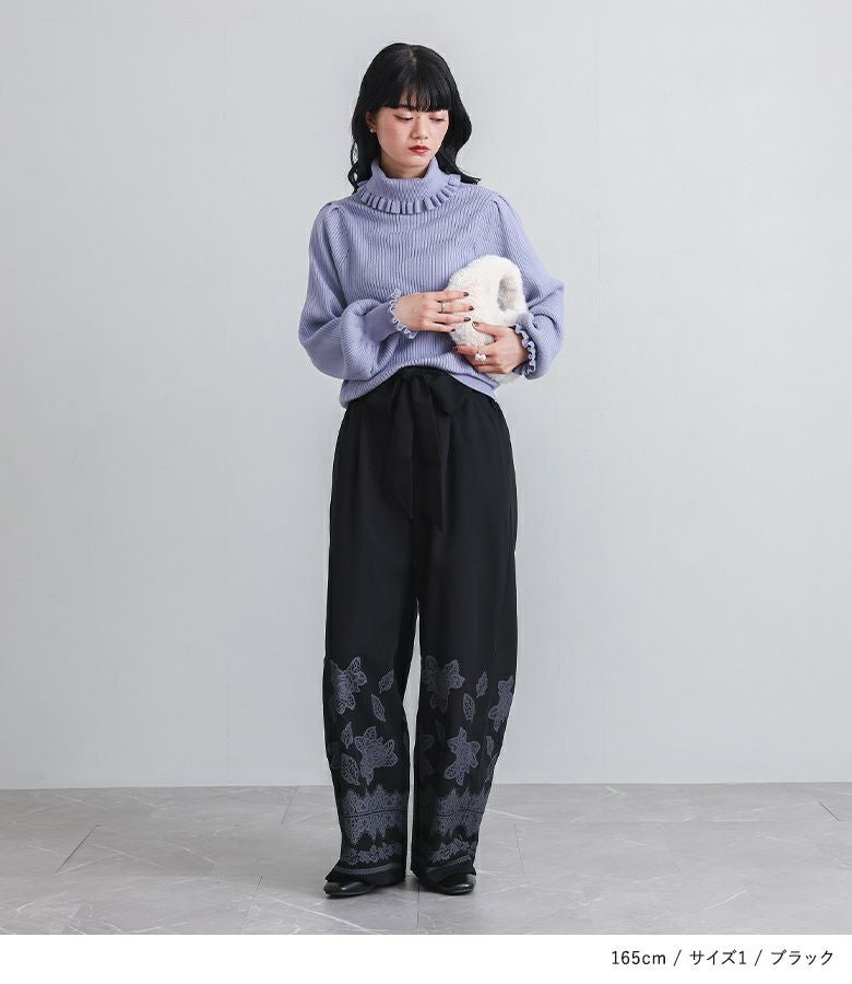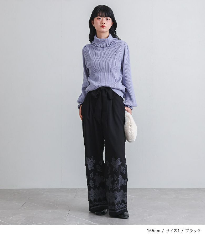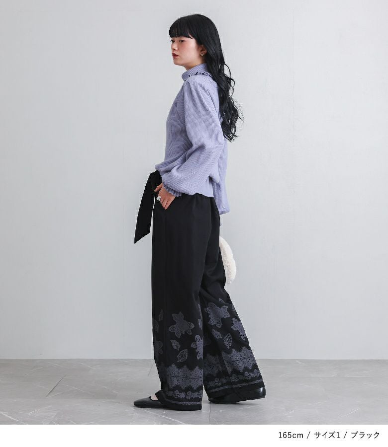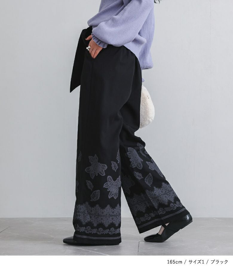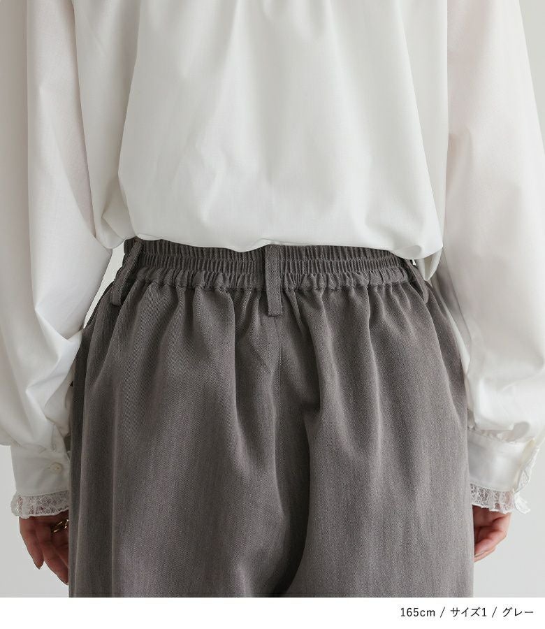 【普段着用】 Tops: M Bottoms: M | 【1】 着丈(ウエスト穿き):くるぶしが隠れる位 ウエスト:ジャスト ヒップ:ややゆったり 太もも周り:ややゆったり 全体:ゆったり