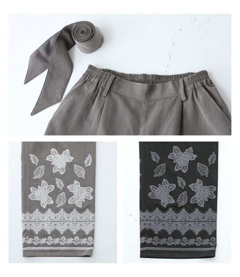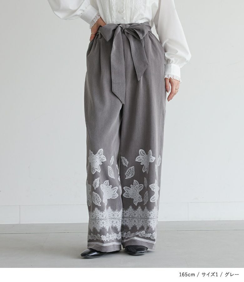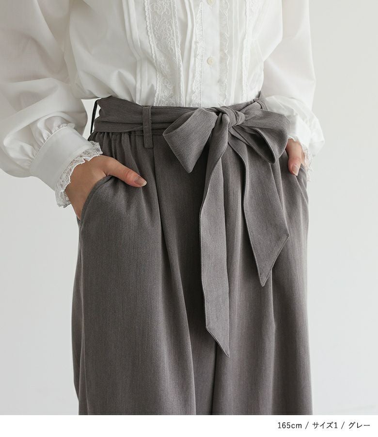 ウエストがゴムなので楽な穿き心地です。ウエストリボンが付いているので結んでも垂らしても気分に合わせてアレンジできるので◎