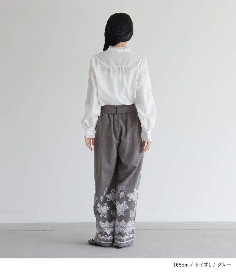 【2】 着丈(ウエスト穿き):かかとが隠れる位 ウエスト:ゆったり ヒップ:ゆったり 太もも周り:ゆったり 全体:ゆったり