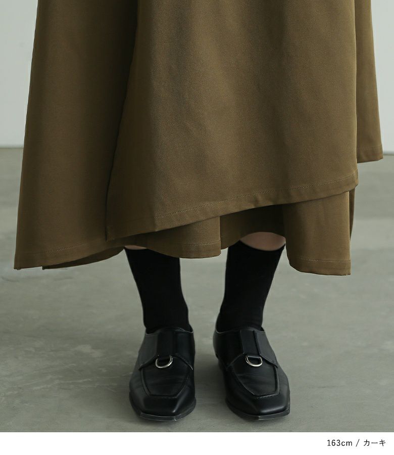 スカートをレイヤードしたようなデザインが特徴のラップパンツ。