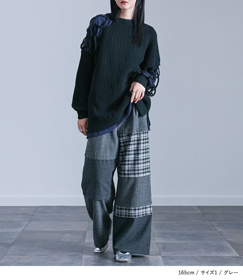 【普段着用】 Tops: M Bottoms: M/L | 【1】 着丈(ウエスト穿き):かかとが隠れる位 ウエスト:ジャスト ヒップ:ややゆったり 太もも周り:ゆったり 全体:スッキリ