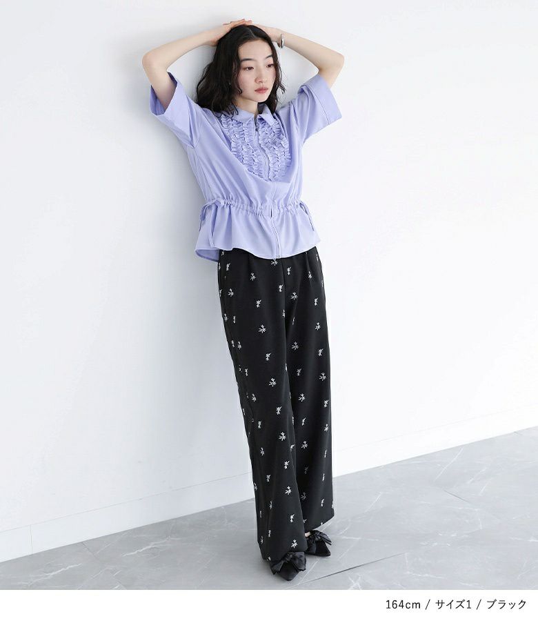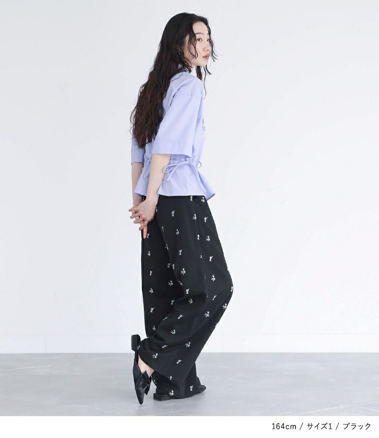ウエストは少し大きく、丈も長いので、ベルトをしてヒールを履くとシルエットがきれいに見えると思います。