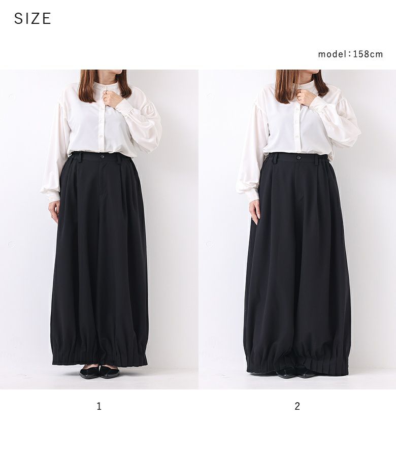 【普段着用】 Tops: S/M Bottoms:S/M | 【1】 着丈(ウエスト穿き):ひざ下5cm位 ウエスト:ややゆったり ヒップ:大きい 太もも周り:大きい 全体:大きい