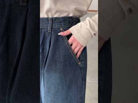ウエストのタックデザインで、ワイドパンツでもすっきりと見えるようにオリジナルのパターンで仕上げたデニムパンツ。立体感のある綺麗なシルエットになるようにこだわった一枚です。デザインボタン&リベットの柄や、太めのステッチがアクセントに。