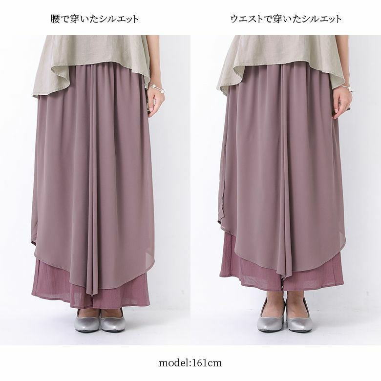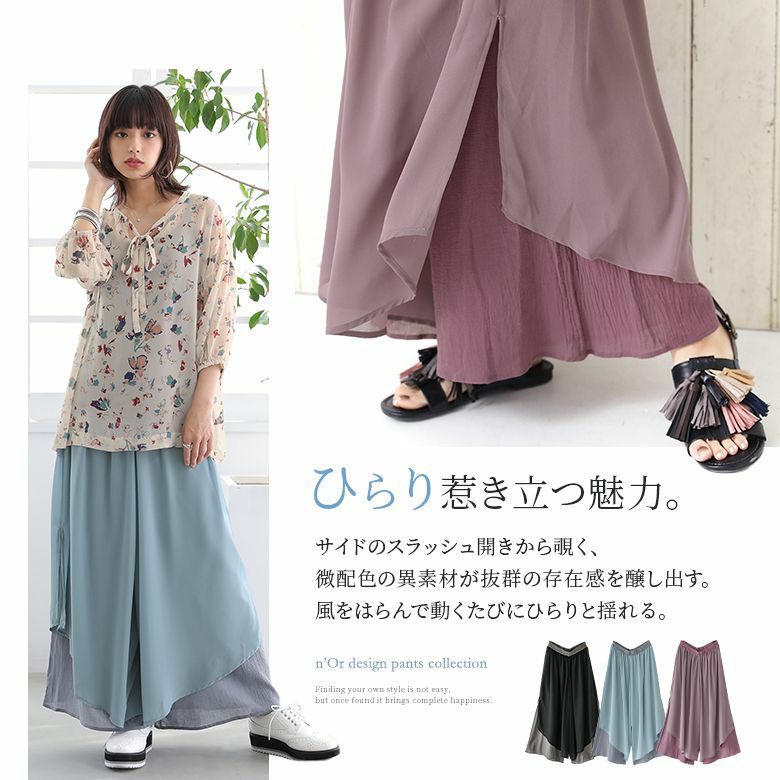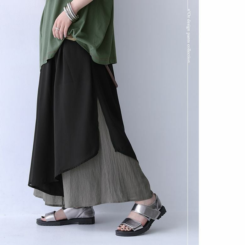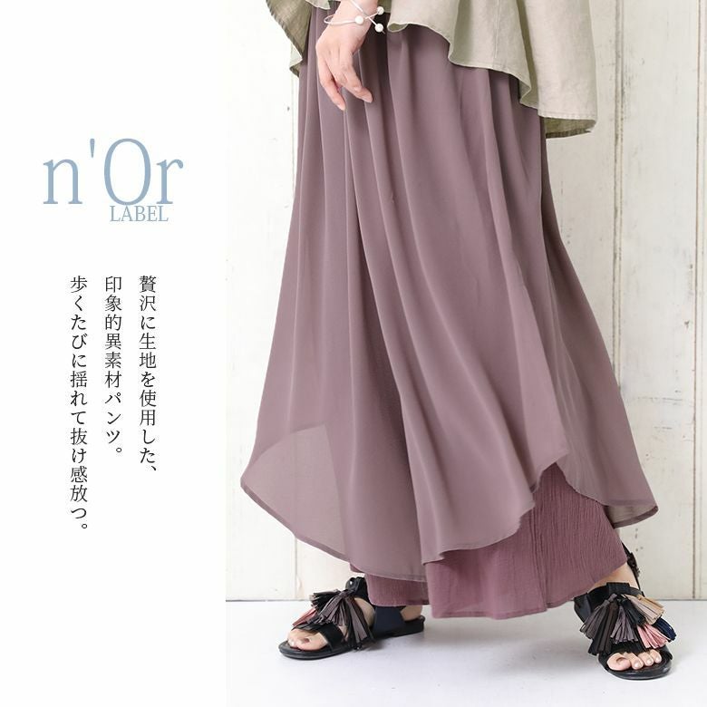 歩くたび揺れて、抜け感放つ≪n'OrLABEL≫異素材レイヤード風フレアパンツです。