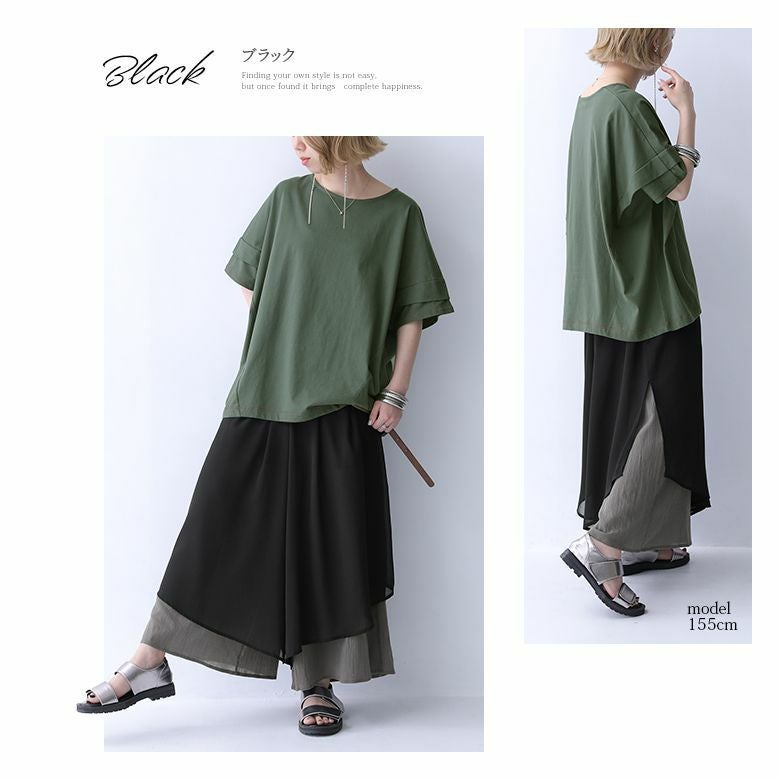 生地をたっぷり使用したレイヤード風のフレアシルエットが、豊かな表情を生み出します。
